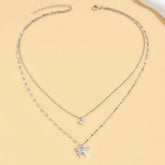 1 Women's Lats Sparkling Double Layer Butterfly Necklace Exquisite Double Layer Collar Chain Jewelry Banquet Party Holiday Gift
