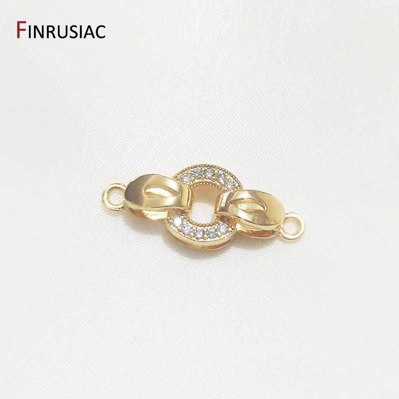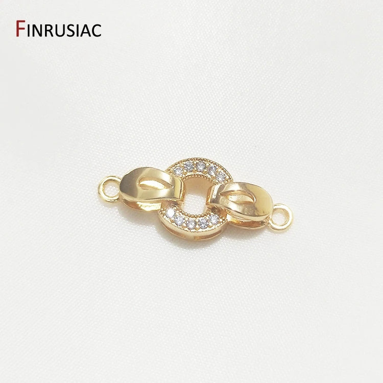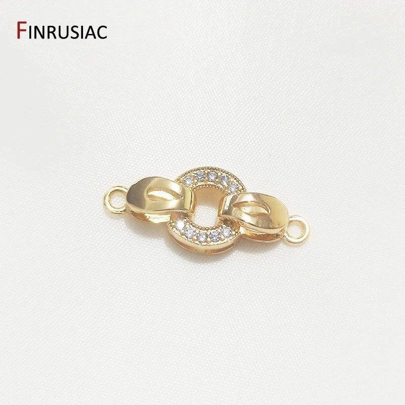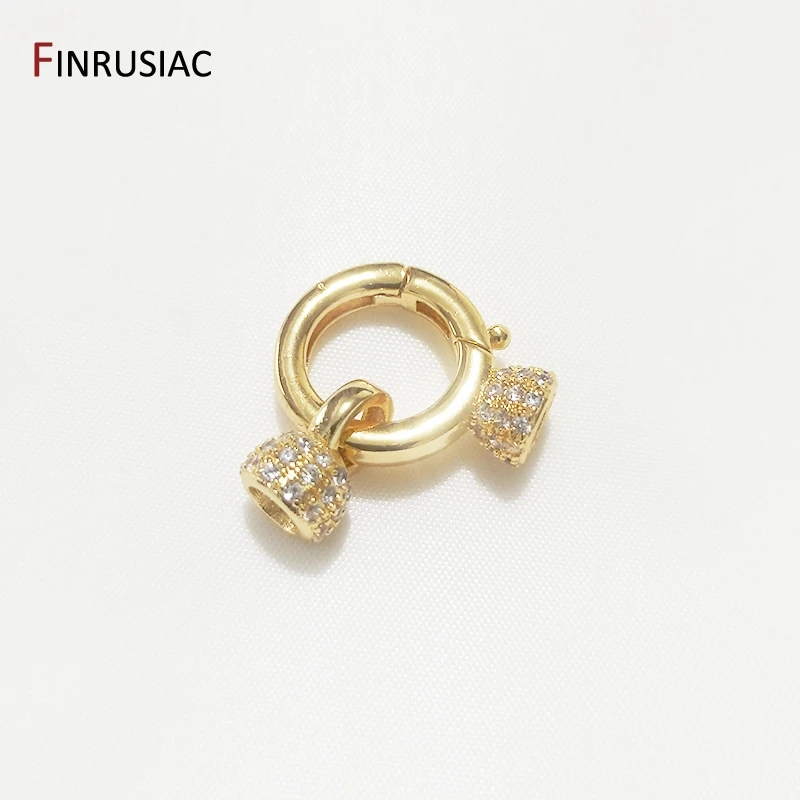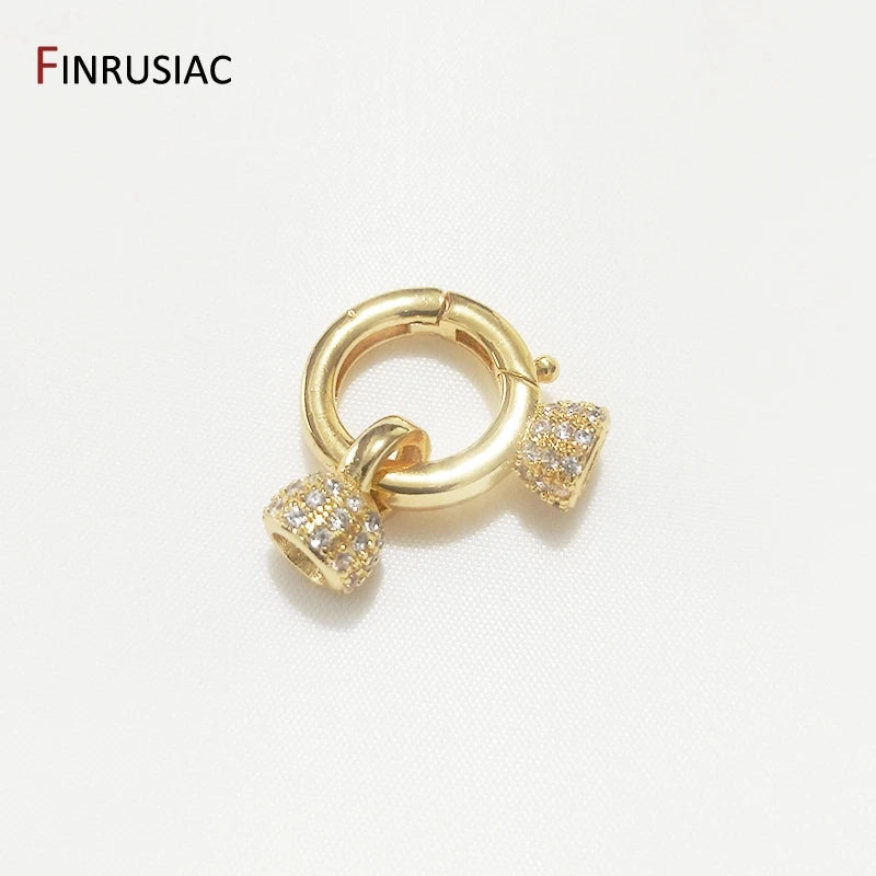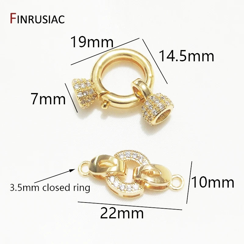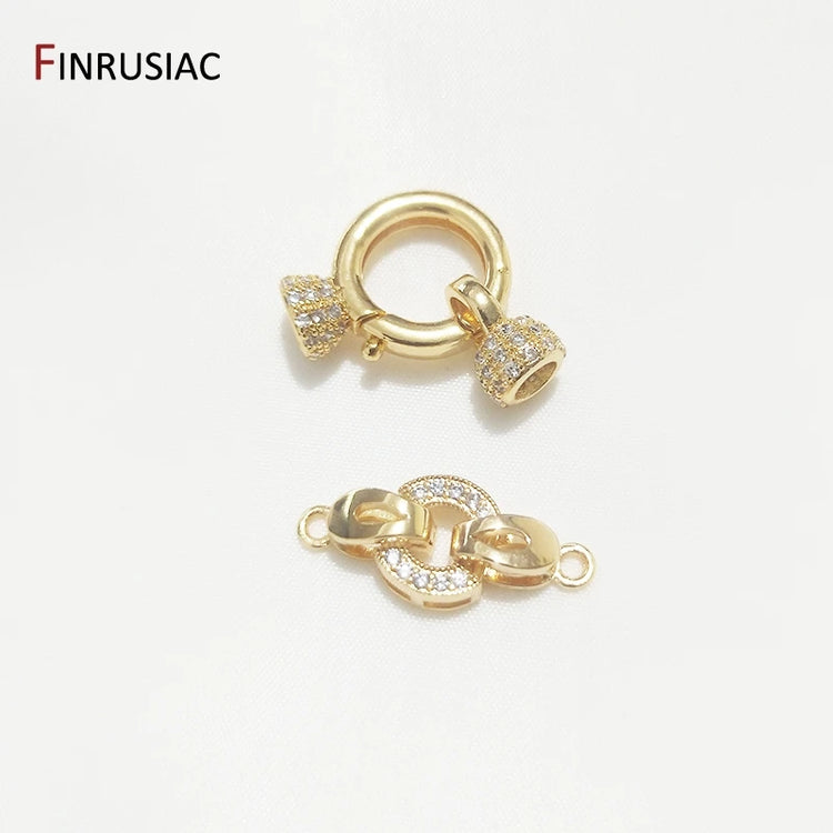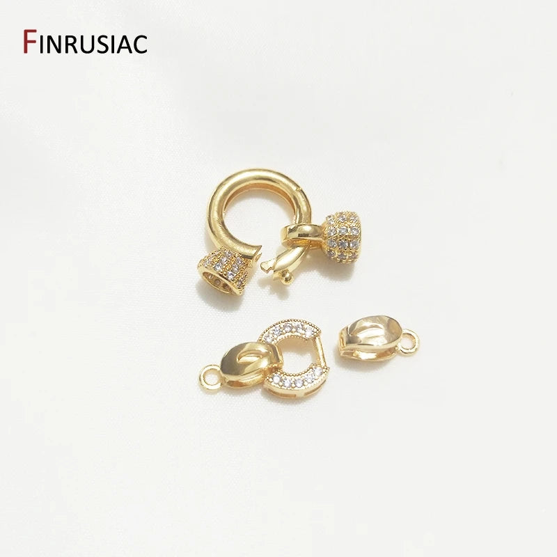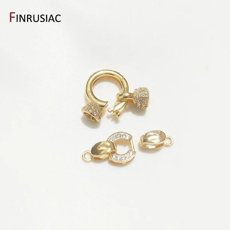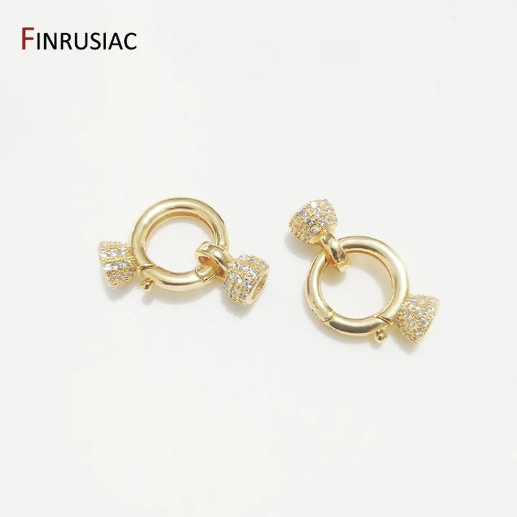 18K Gold Plated Copper Metal Inlaid Zircon Round Fastener Clasps DIY Pearl Jewelry Beading Connector For Jewelry Making