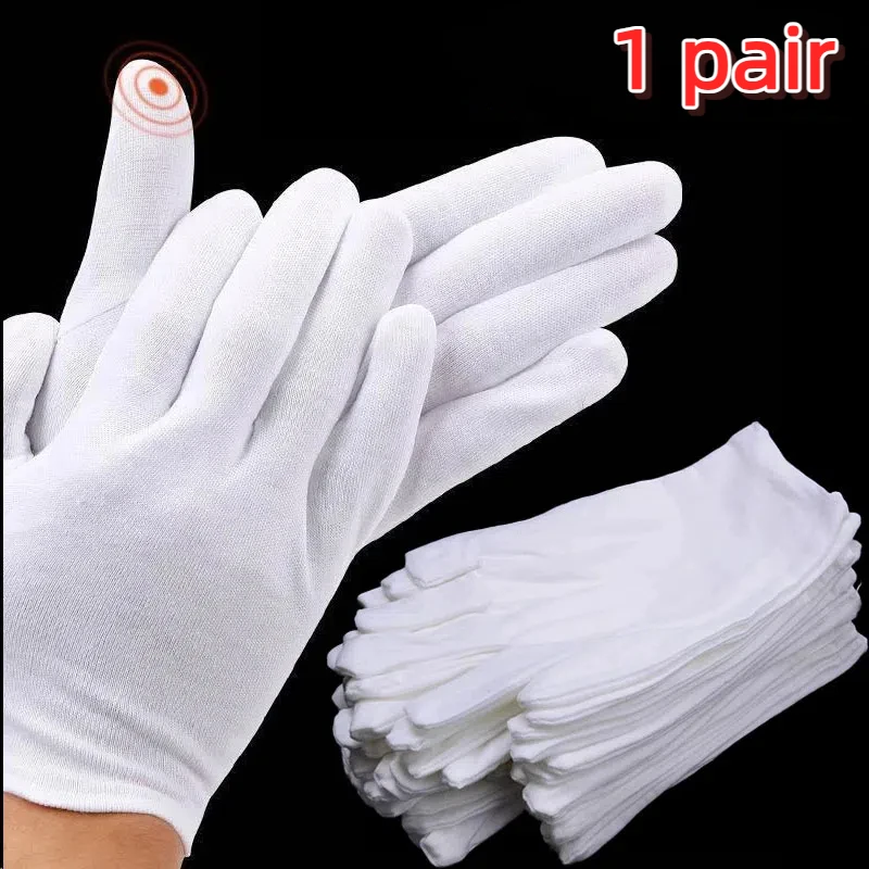 1pair White Cotton Gloves Men Formal Tuxedo Uniform Gloves Honor Guard Parade Ceremony Costume Cosplay Coin Jewelry Butler Glove
