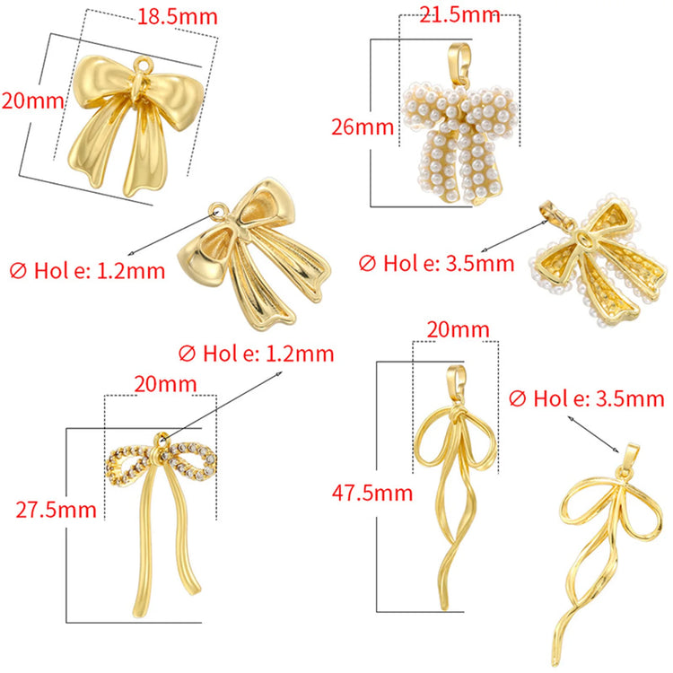 1pc 3d Bowknot Brass Clothes Pendant 18k Gold Plated Acrylic Imitation Pearl Charms DIY Necklace Earrings Women Jewelry Findings