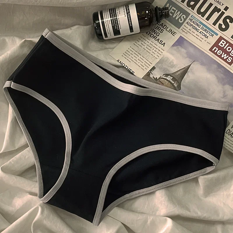 3pcs Cotton Women's Panties Triangle Sports Style Minimalist Girls' Underwear Mid Waist Japanese white black Women Underwear