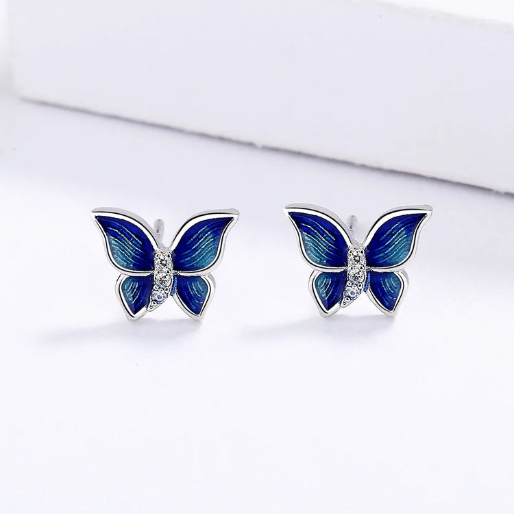 925 Sterling Silver Creative Micro-Enamel Blue Butterfly Wings Necklace Three-piece Jewelry Women's Suit Party Birthday Gift