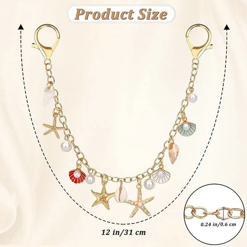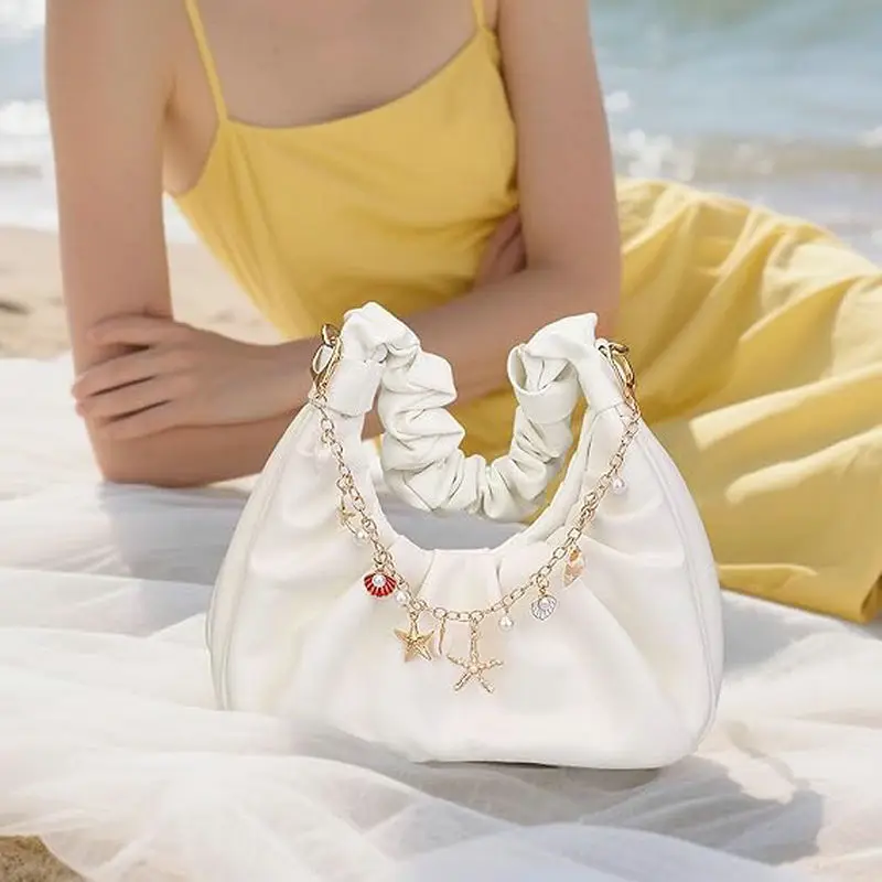 Our bag charms combine a variety of creative pendant designs such as pearls, shells, conchs and starfishes, and are paired with a metal chain to present a modern and trendy look, enhancing the overall beauty of the bag