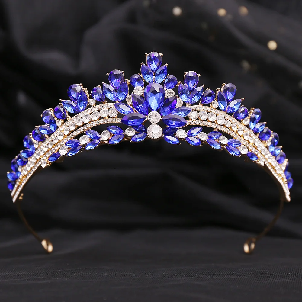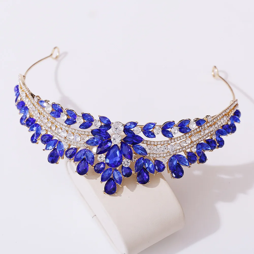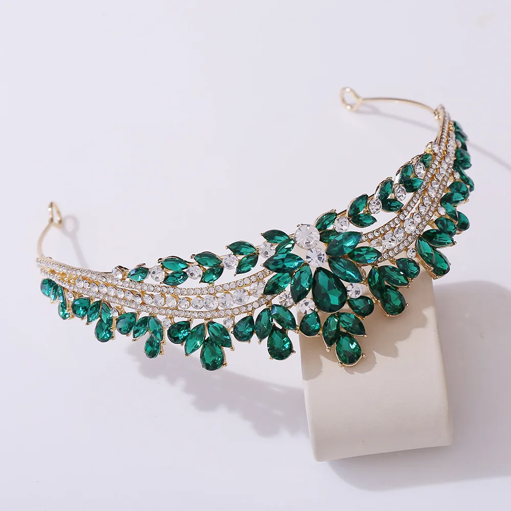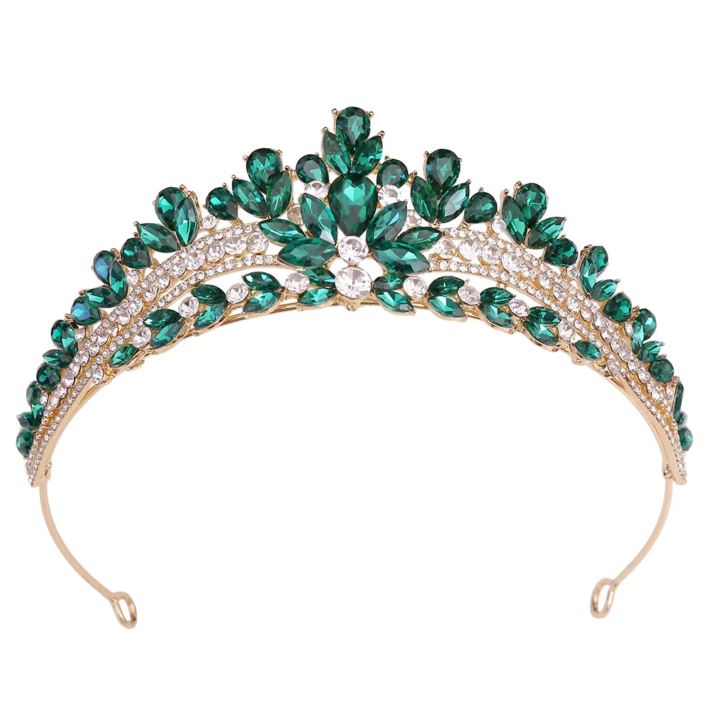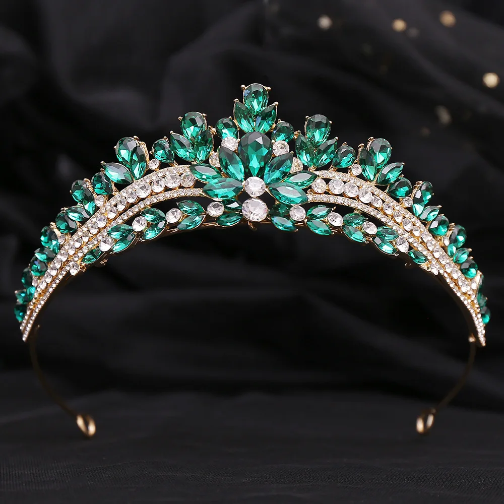 DIEZI Korean Green Blue Opal Crystal Princess Crown For Women Wedding Luxury Queen Princess Bridal Party Tiaras Hair Accessories