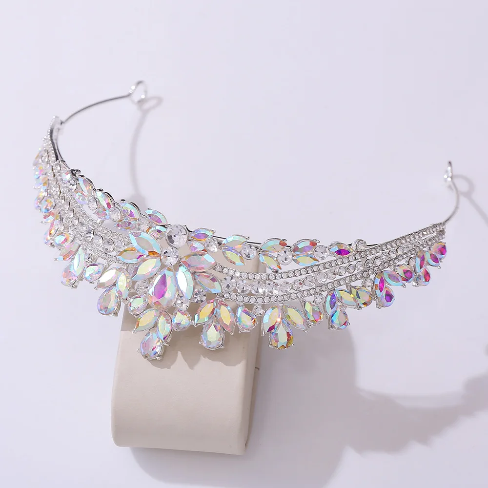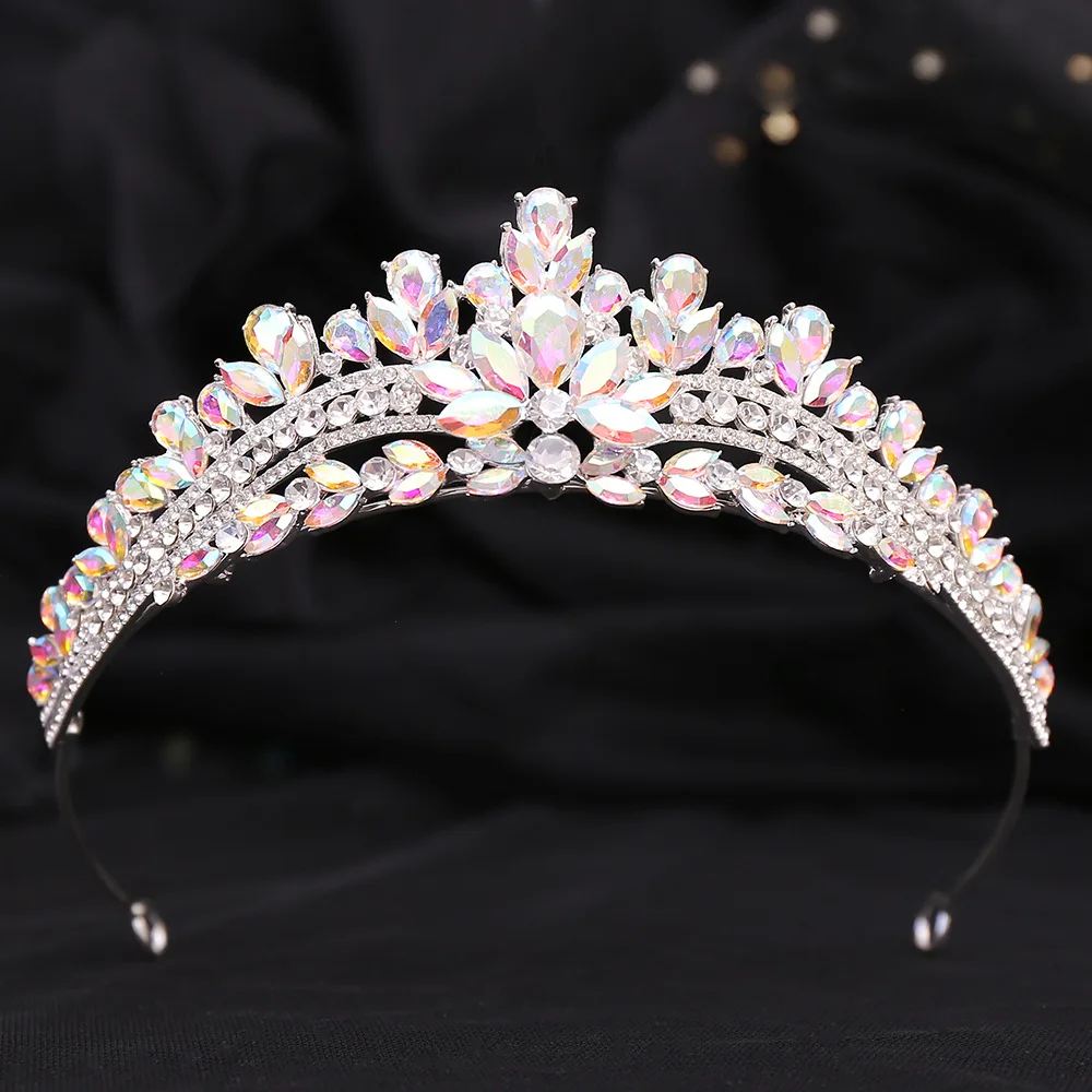 DIEZI Korean Silver Color AB Crystal Princess Crown For Women Wedding Luxury Queen Princess Bridal Party Tiaras Hair Accessories