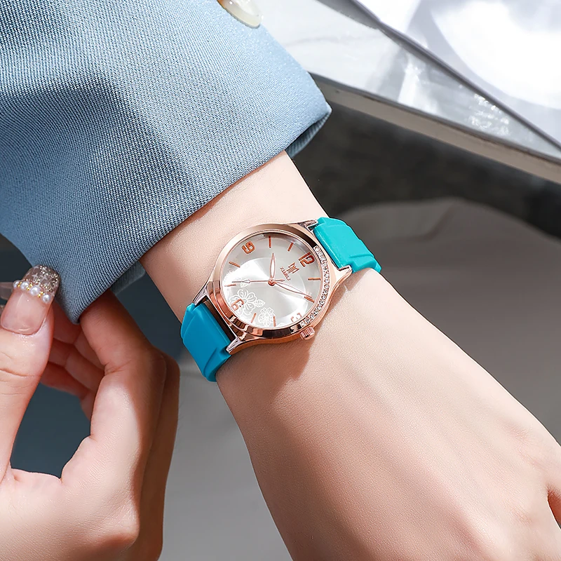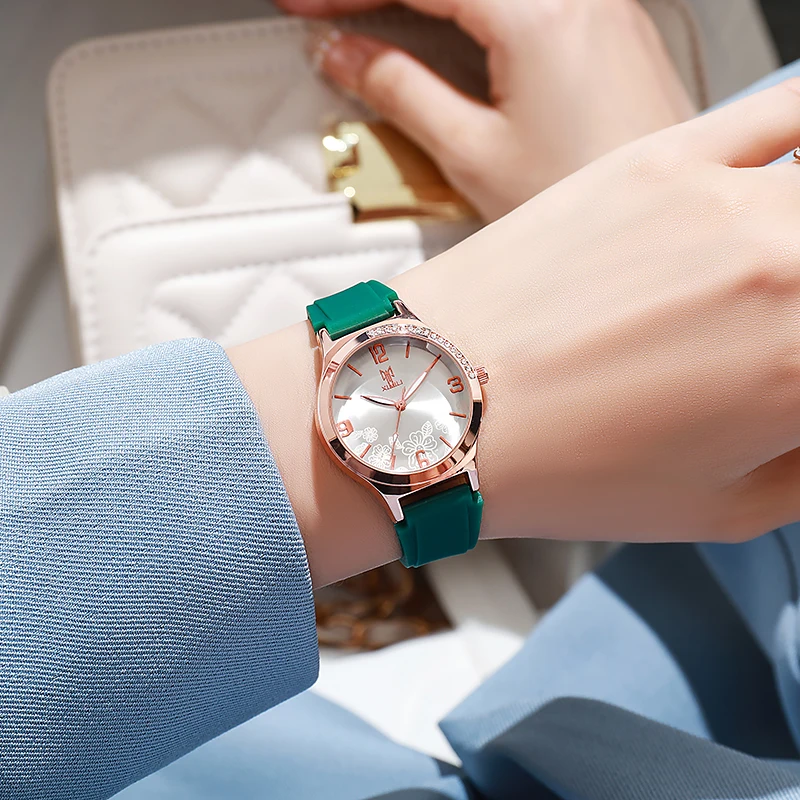 Fashion 2025 Simple Rose Gold Digital Floral Women's Quartz Watch Sport Black Silicone Women's Clock Dress Gift Watches