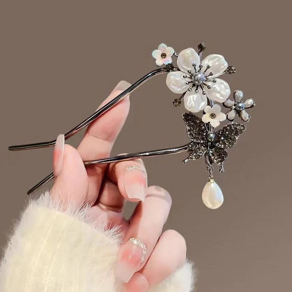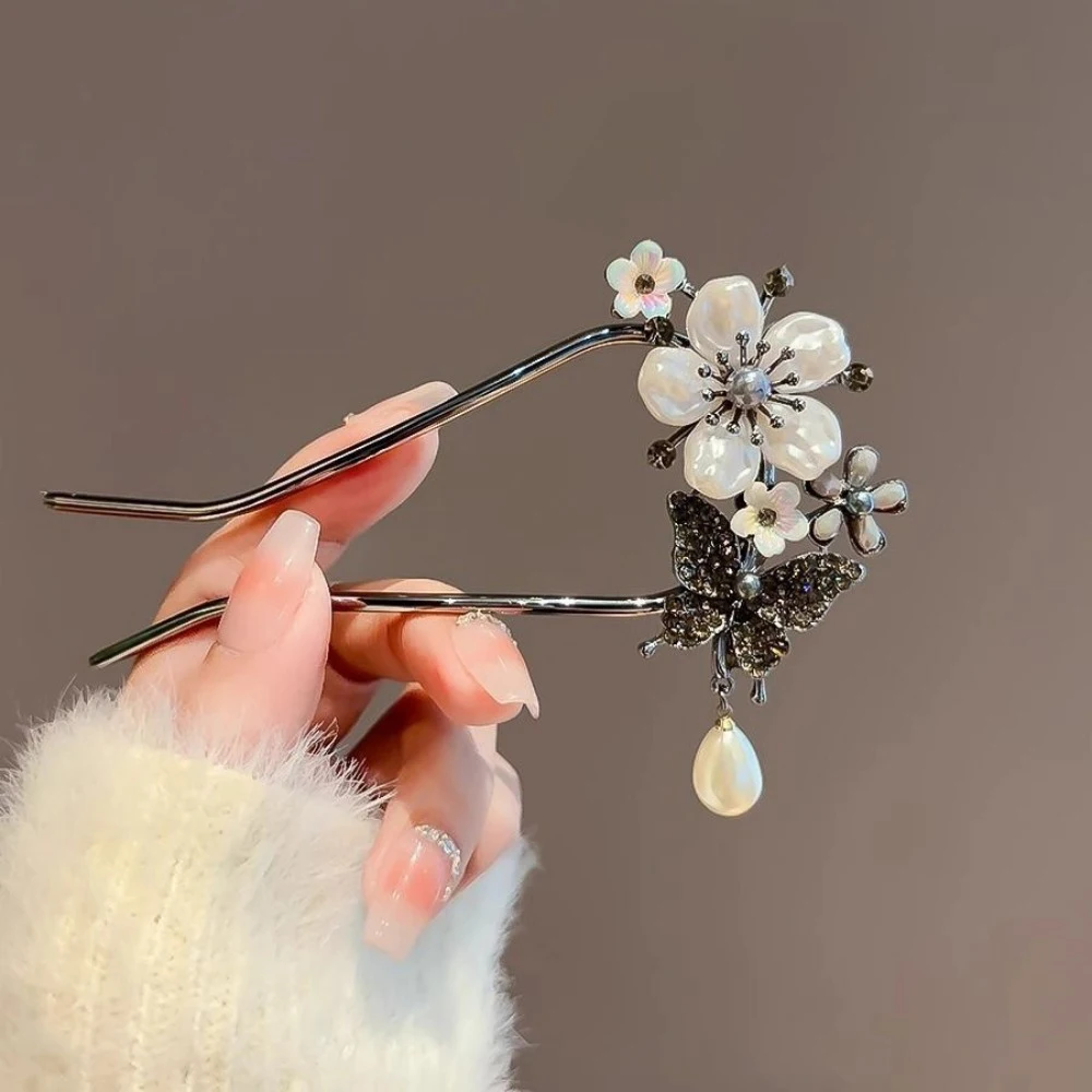 Fashion Chinese Style Flower Butterfly Hairpin Chopsticks Women Elegant U Shape Sticks Headwear Hanfu Hair Accessories Jewelry
