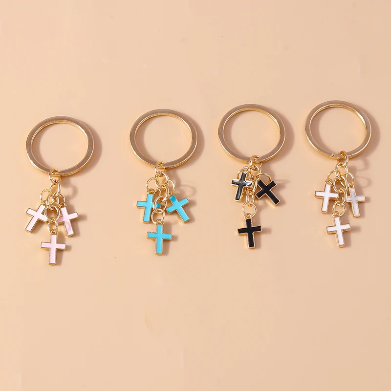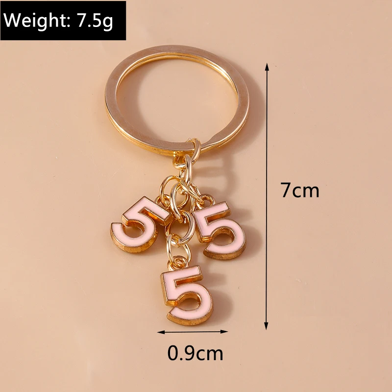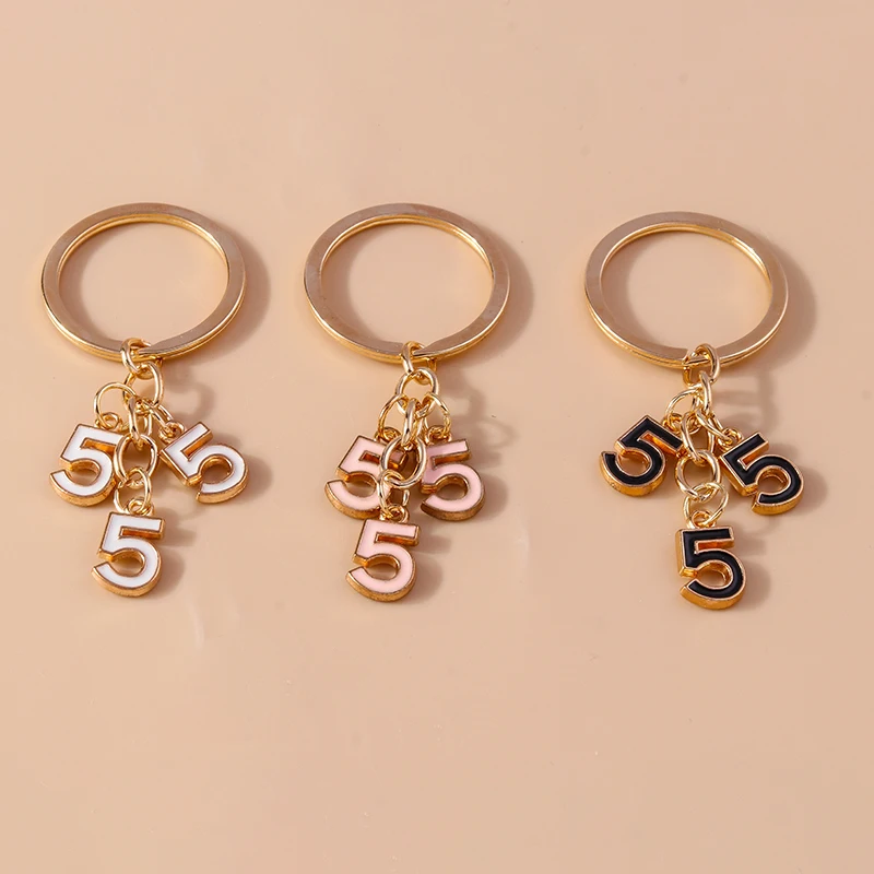Fashion Enamel Cross Keychain Number 5 Key Ring Pendant for Women Girls Handbag Decor DIY Handmade Jewelry Gift