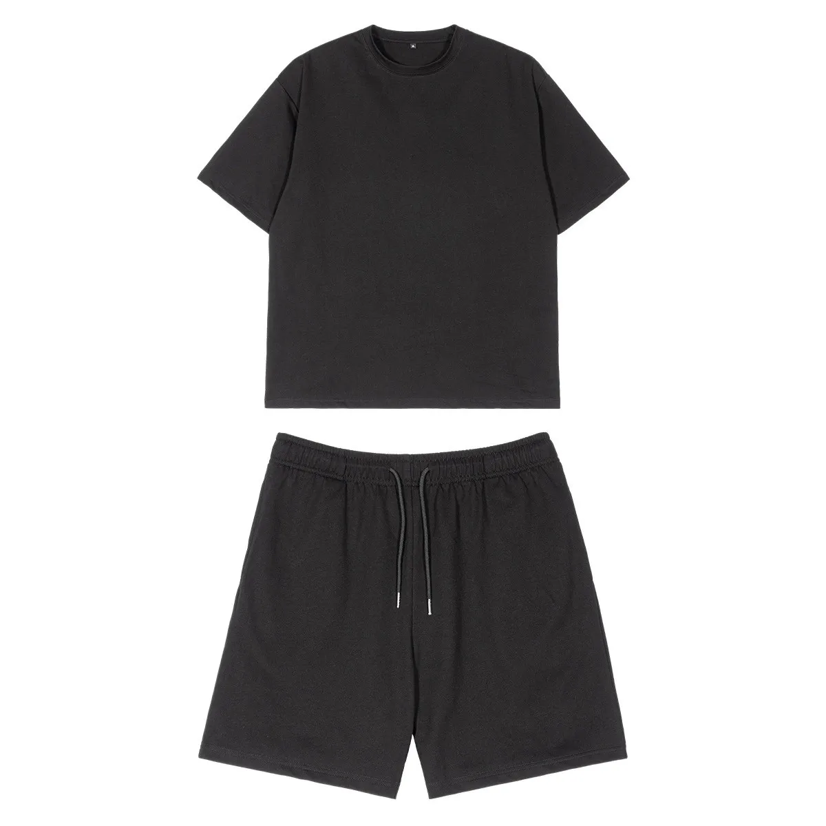 High Quality 100% Cotton Summer 2 Piece Set Man Street Style Brown T-shirt and Short Set Plus Size Blank Tracksuits Set for Men