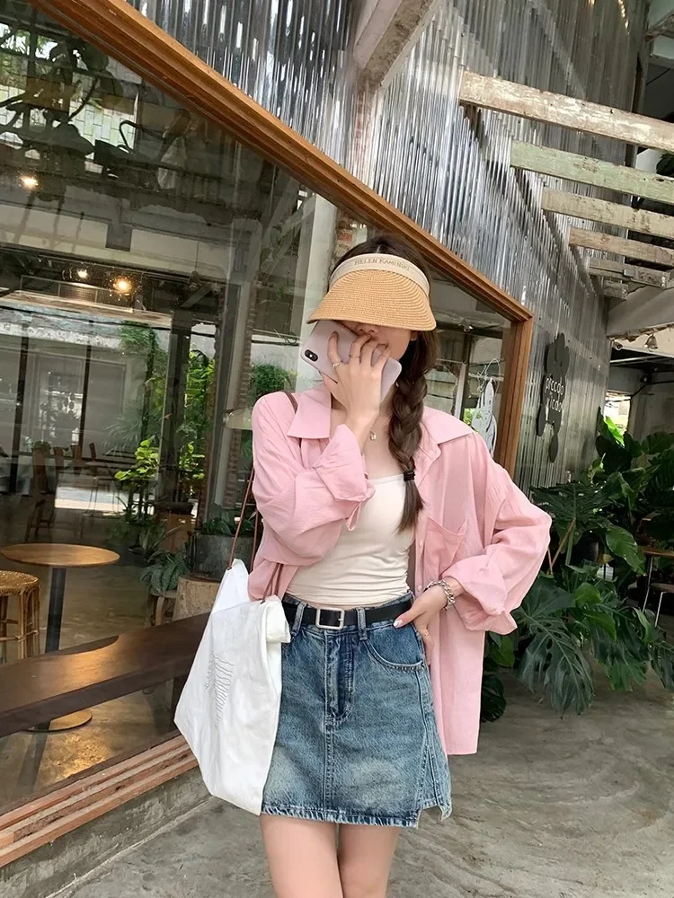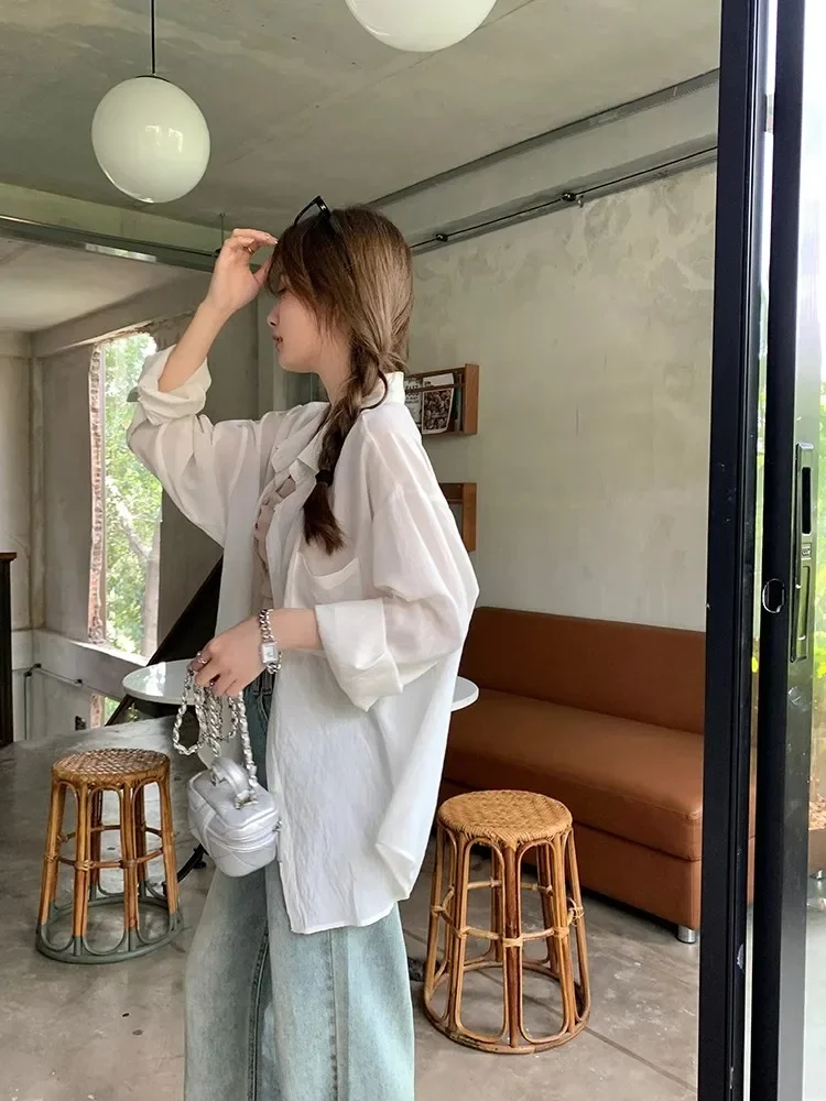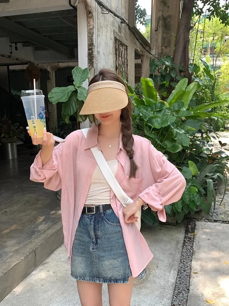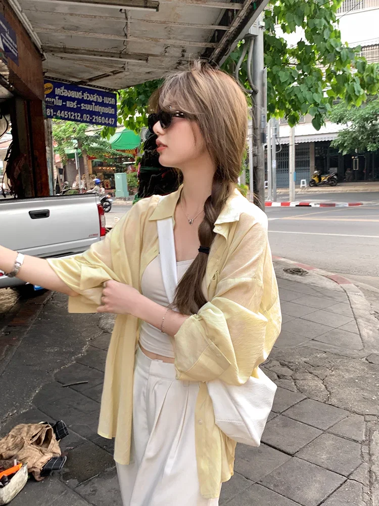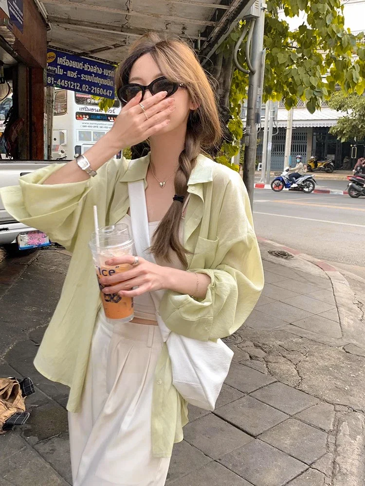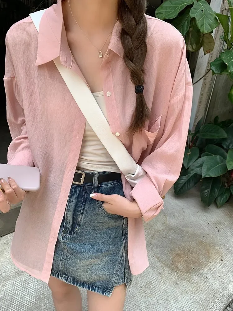 Korean Style Shirts Women Summer Candy Color Long Sleeve Sun-proof Breathable Loose Outwear Young Students All-match Popular Ins
