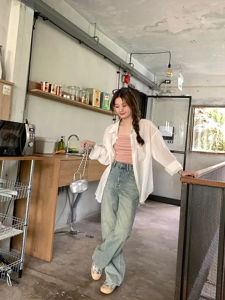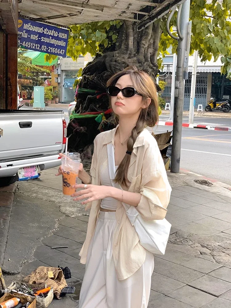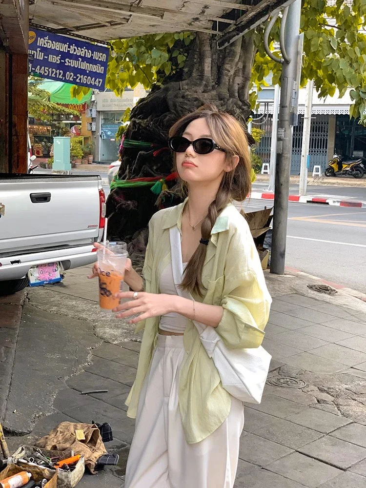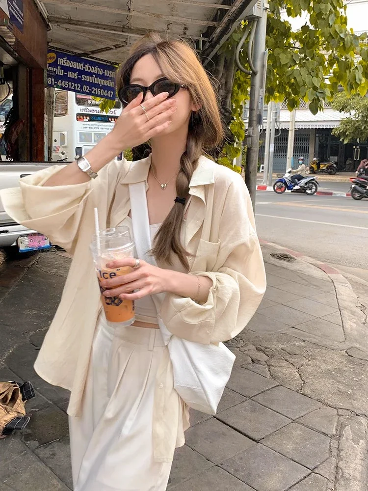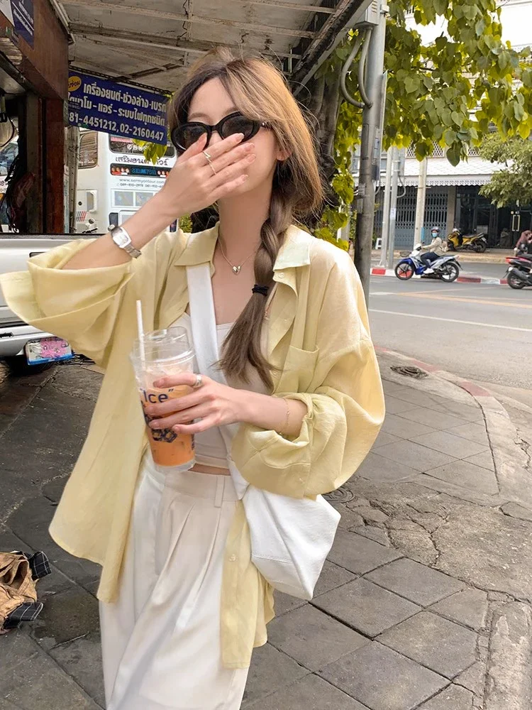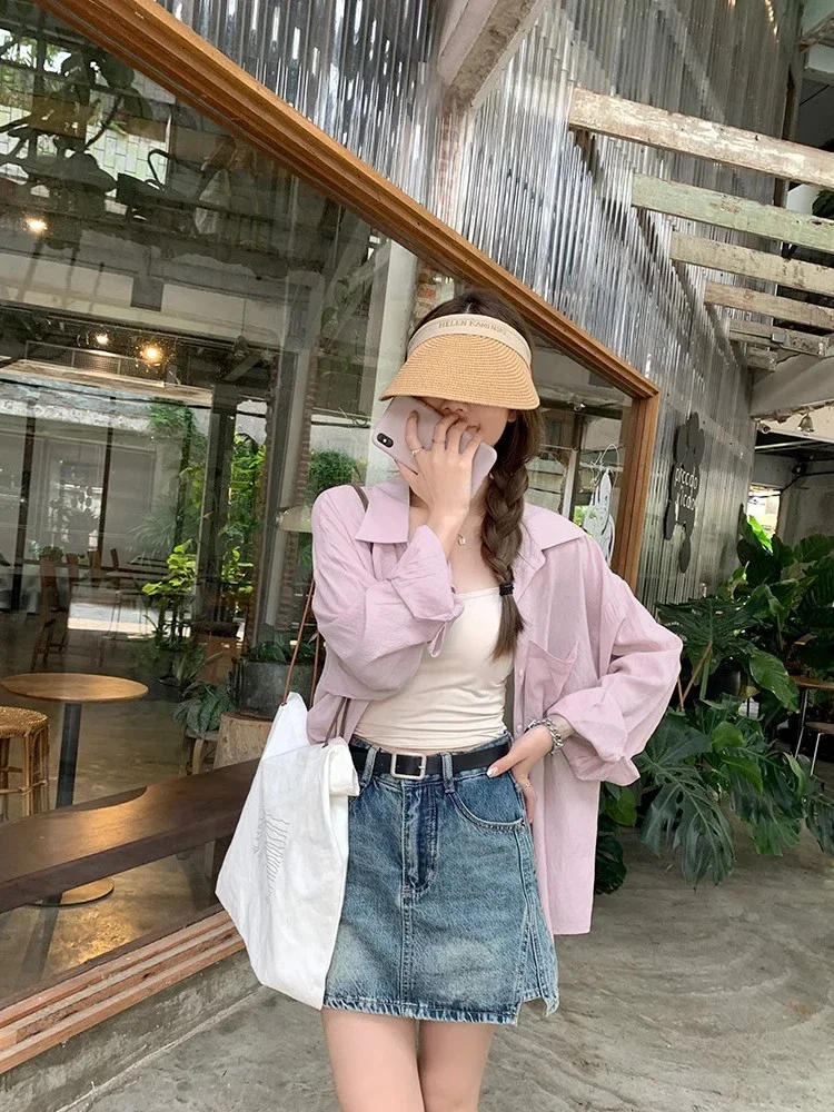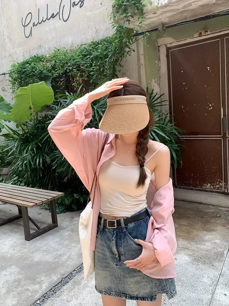 Korean Style Shirts Women Summer Candy Color Long Sleeve Sun-proof Breathable Loose Outwear Young Students All-match Popular Ins