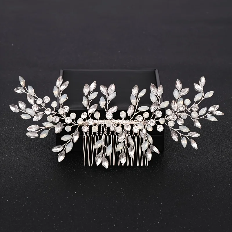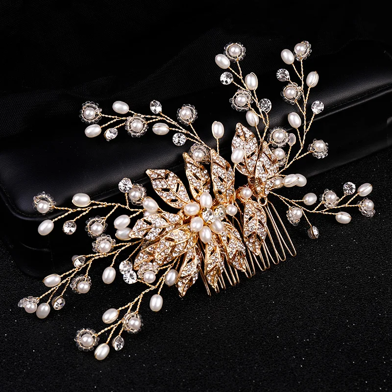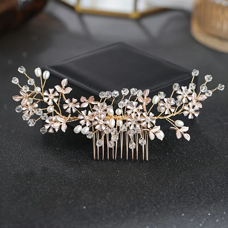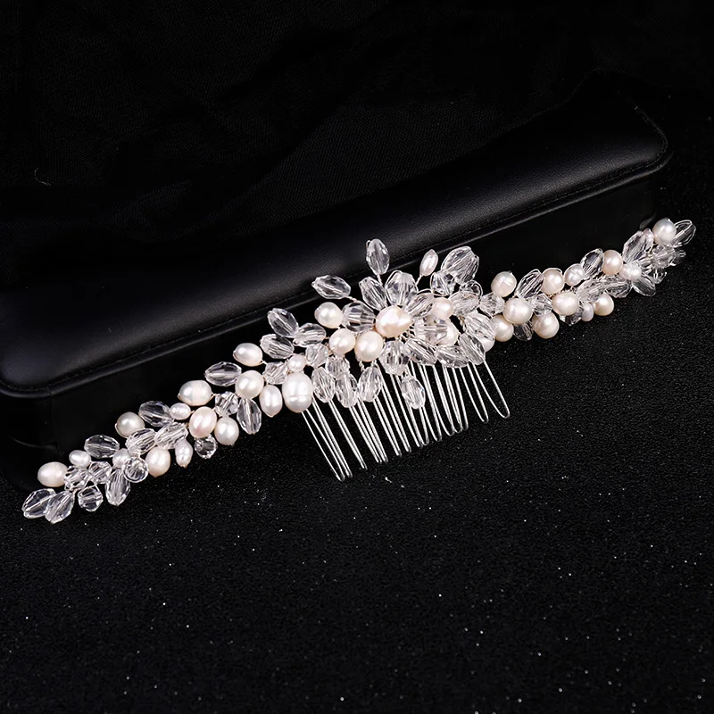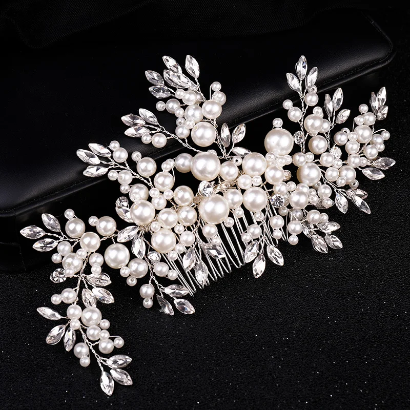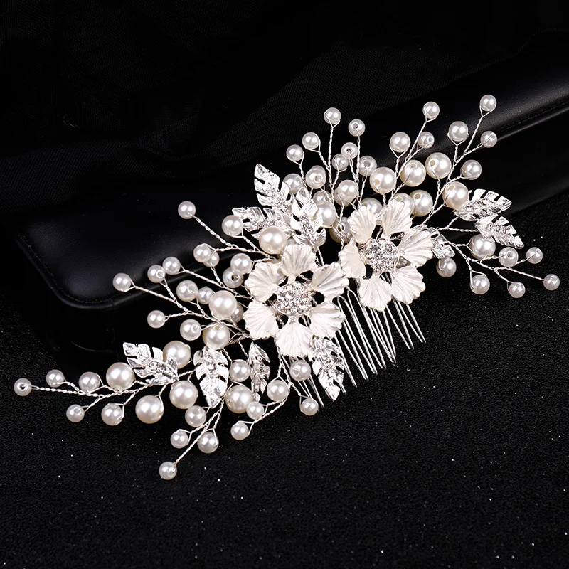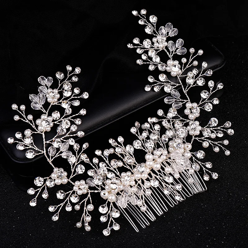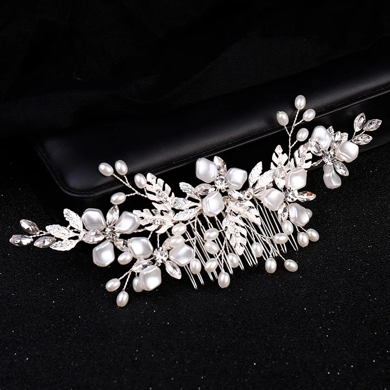 Luxury Crystal Pearl Flower Hair Comb Headband Tiara For Women Bride Party Bridal Wedding Hair Accessories Jewelry Comb Headband