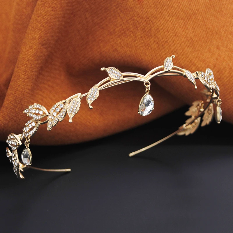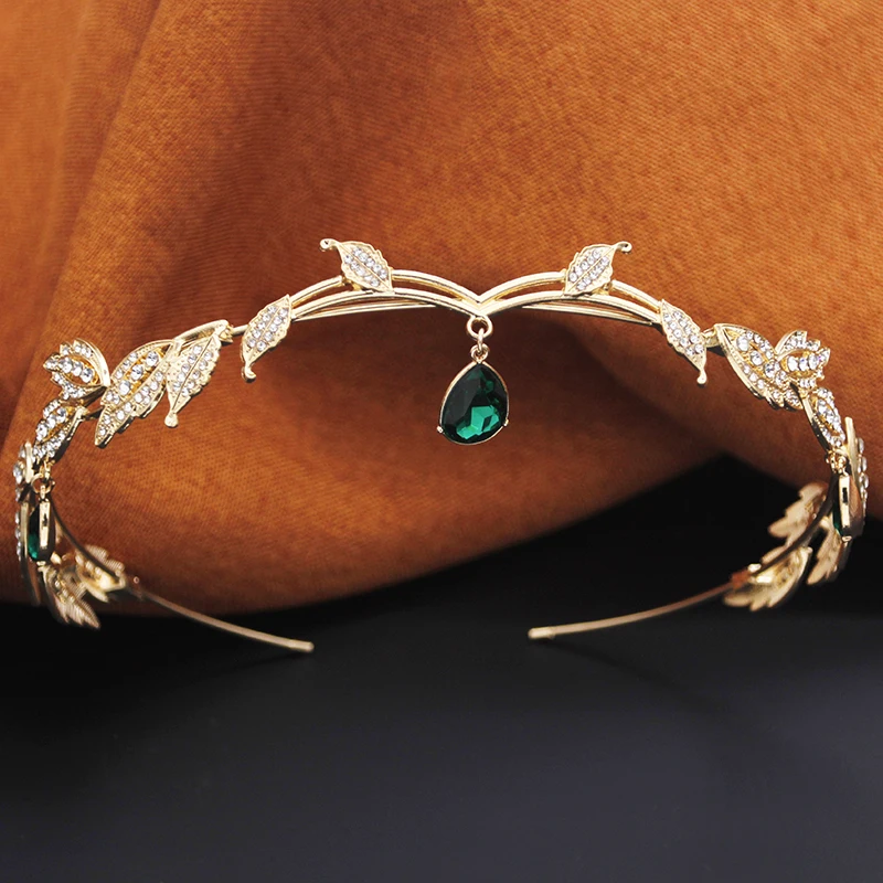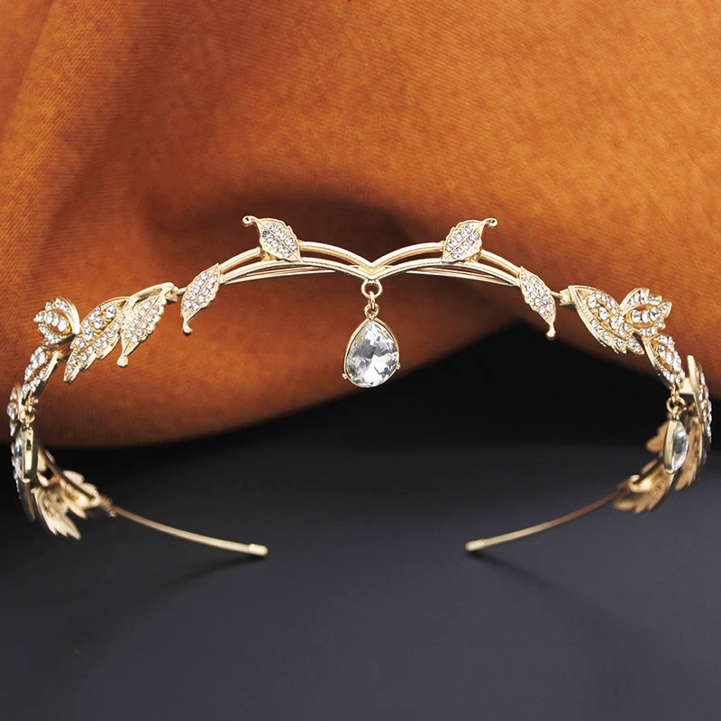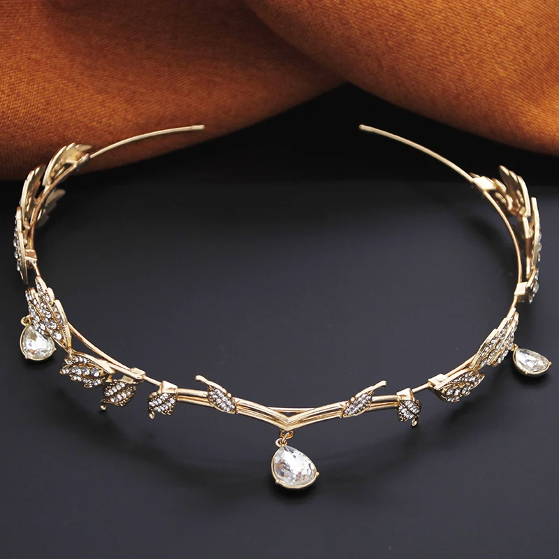 Luxury Forehead Ornaments Crown Tiaras Crystal Leaves Tiara Headbands Hair Accessories for Women Costume Hair Jewelry