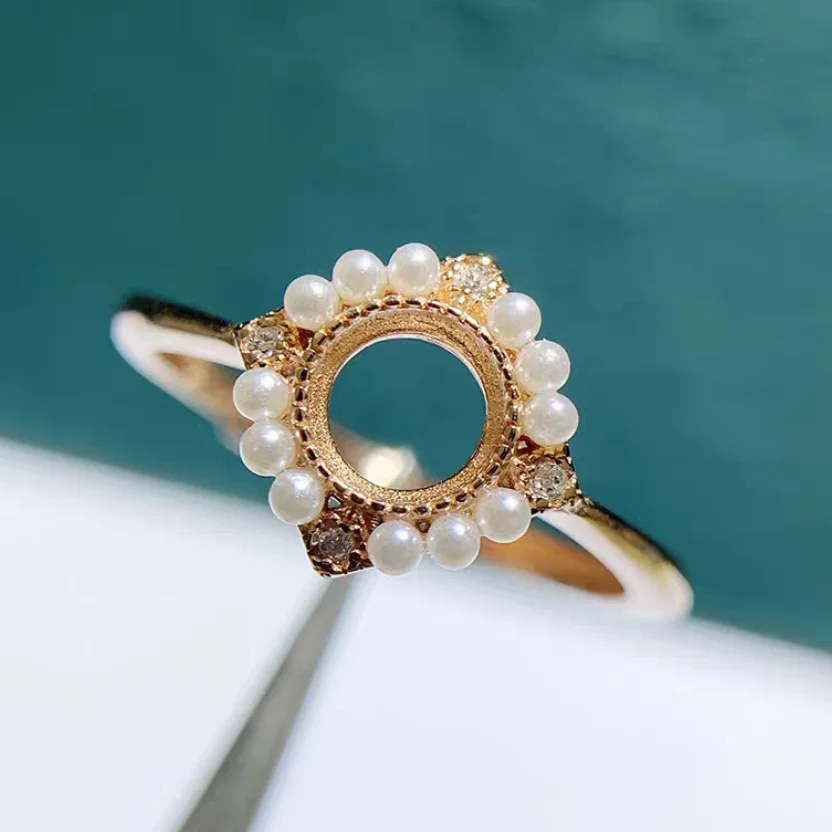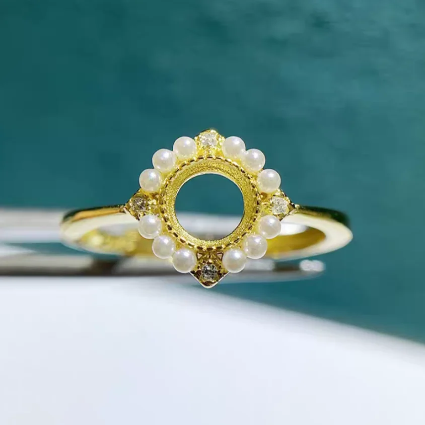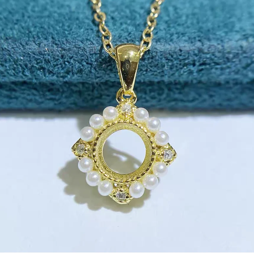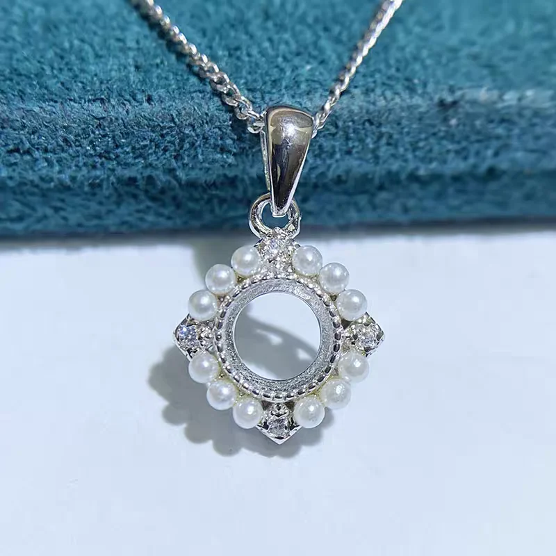 MeiBaPJ 5mm/6mm Round Stones Pearl Jewelry Set Holder Pendant Earrings Ring 3-pieces Suit Fine Wedding Jewelry for Women