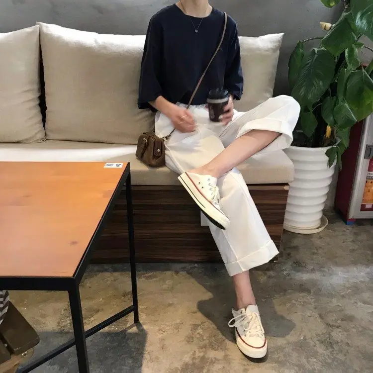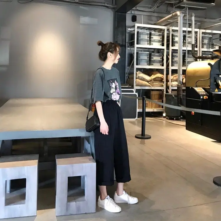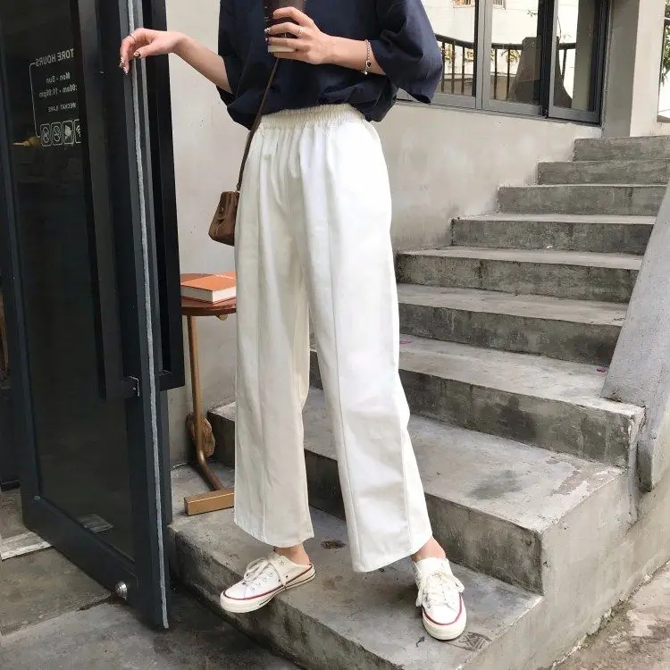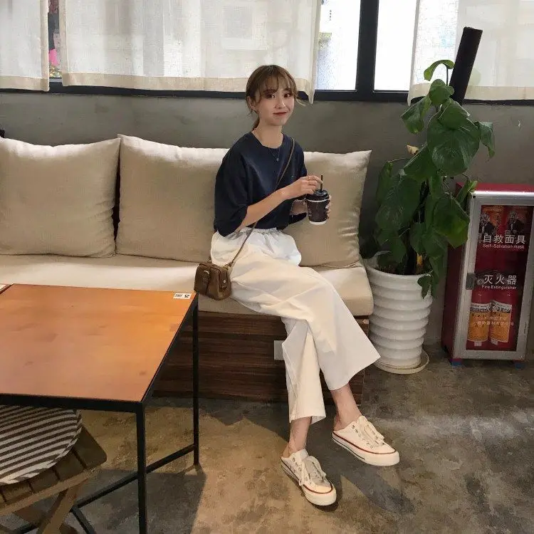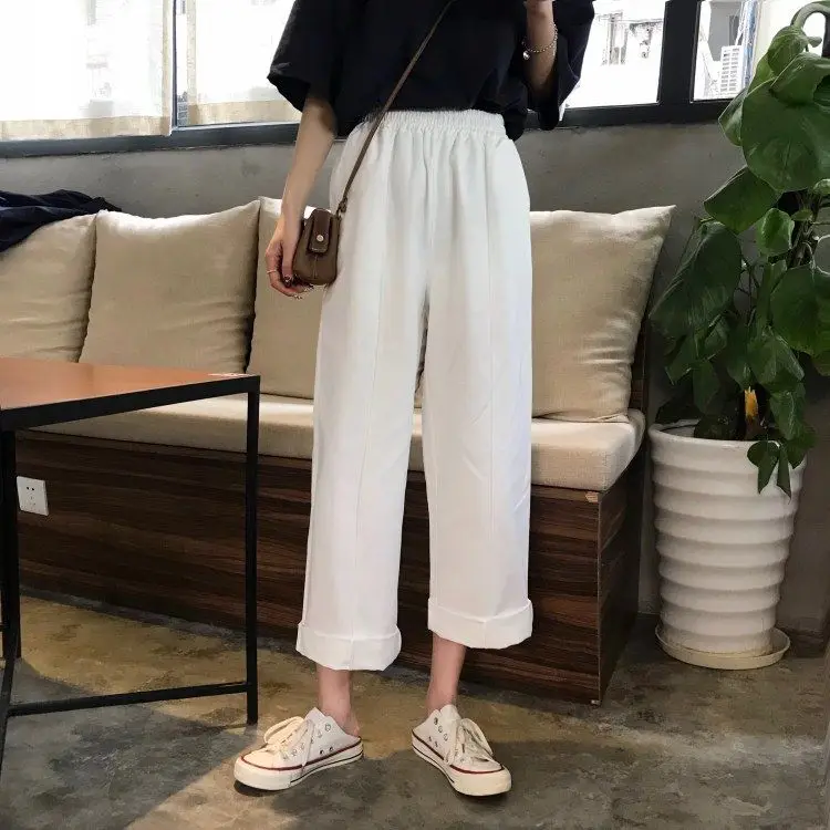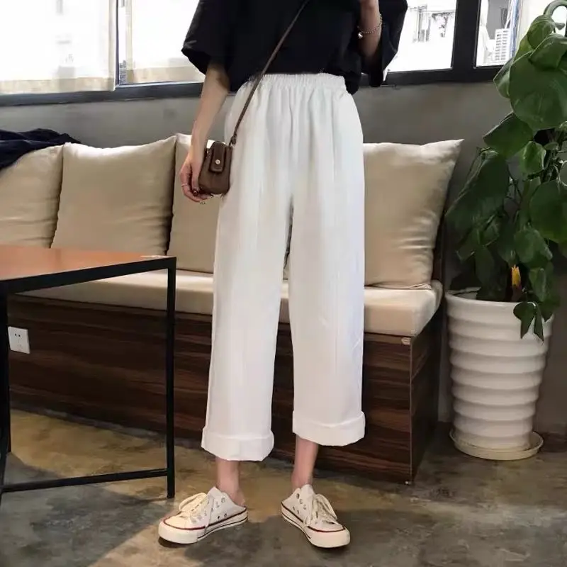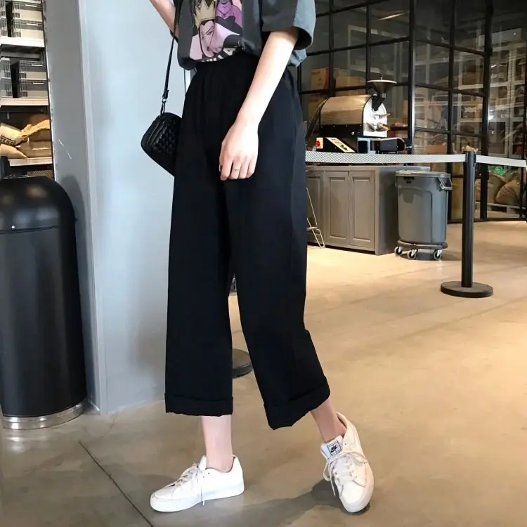 Pants for Women's Summer Fashion New Style 2025 Ins Korean High Waist Straight Wide-leg Pants Fashion Nine-point Casual Pants