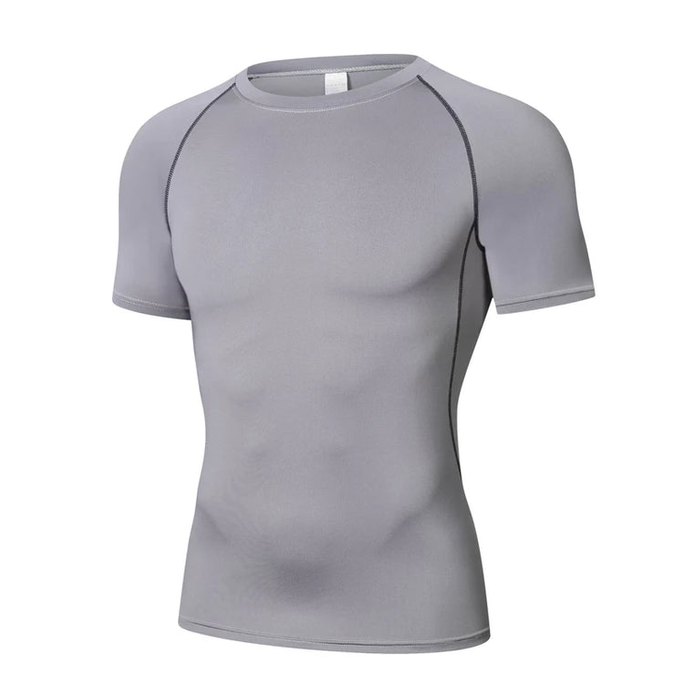 Sports T-shirt men's quick drying short sleeved sports T-shirt top gym fitness tight fitting shirt training running T-shirt men'
