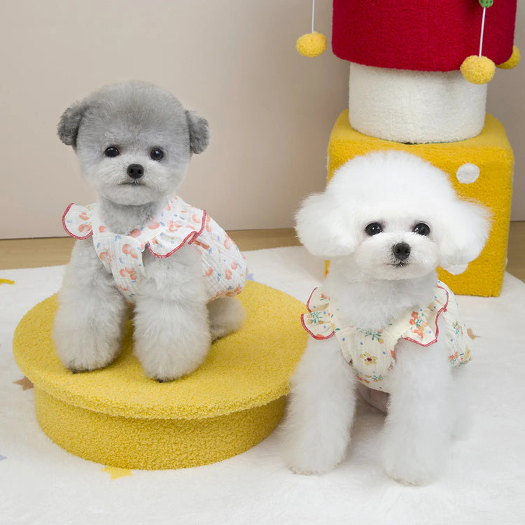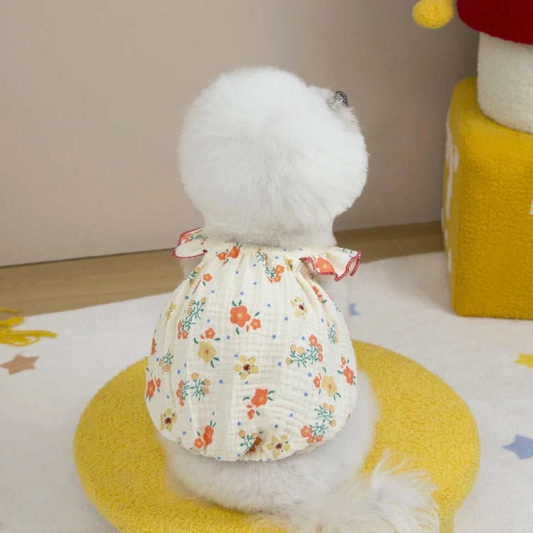 Spring Pet Floral Dress Pet Flower Bud Vest Cute Flying Sleeve Small Dog Clothes Flying Sleeve Skirt Puppy Clothes