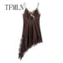 TFMLN Women Sexy Lace Splicing Dresses Summer Solid Sleeveless Asymmetry Dress Backless Slim Women's Party Sling Mini Dress