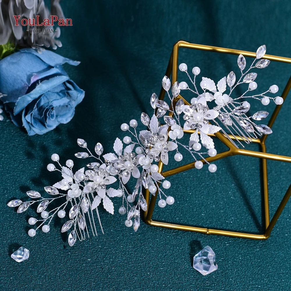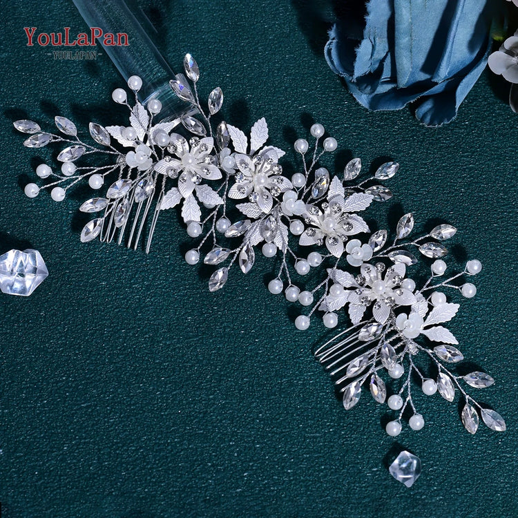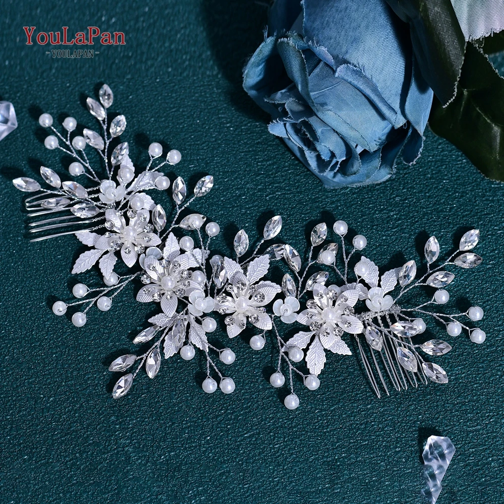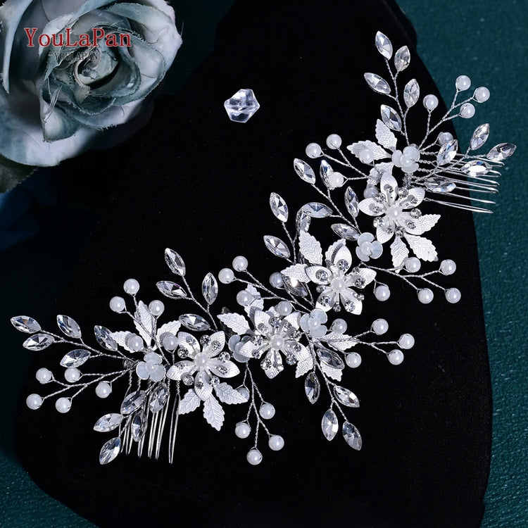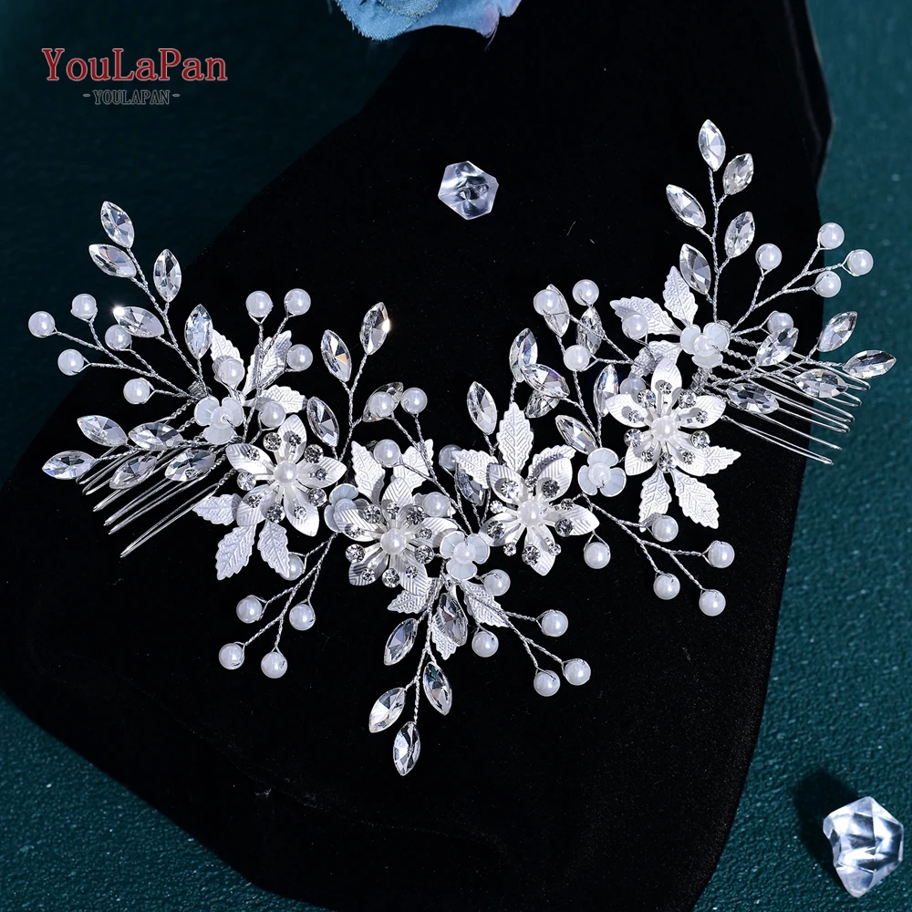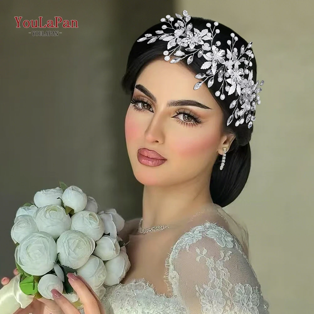 TOPQUEEN Handmade Bride Hair Comb Wedding Alloy Pearl Rhinestone Hair Accessories Woman Hair Ornament Bridal Tiara Princess Headdress Jewelry HP896