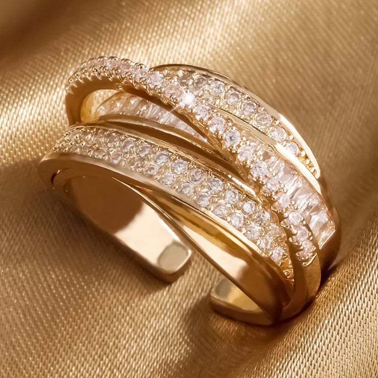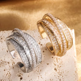 UILZ High Quality Copper Inlaid Zircon Multi-layer Star Opening Ring Women's Plated 18k-Gold Couple Holiday Gift Ring Jewelry
