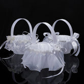 White Flower Girls Basket Simple Wedding Flower Basket Bride Bridesmaid Hand Held Basket Wedding Ceremony Party Decorations