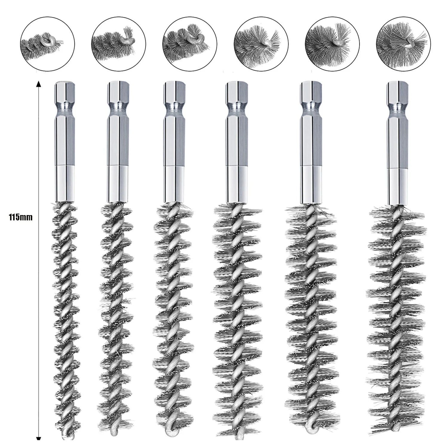 Wire Brush Drill Bore Cleaning Brush 1/4 " Hexagonal Handle Stainless Steel Brush for Anti-rust Cleaning of Pipe Ports 8-19mm