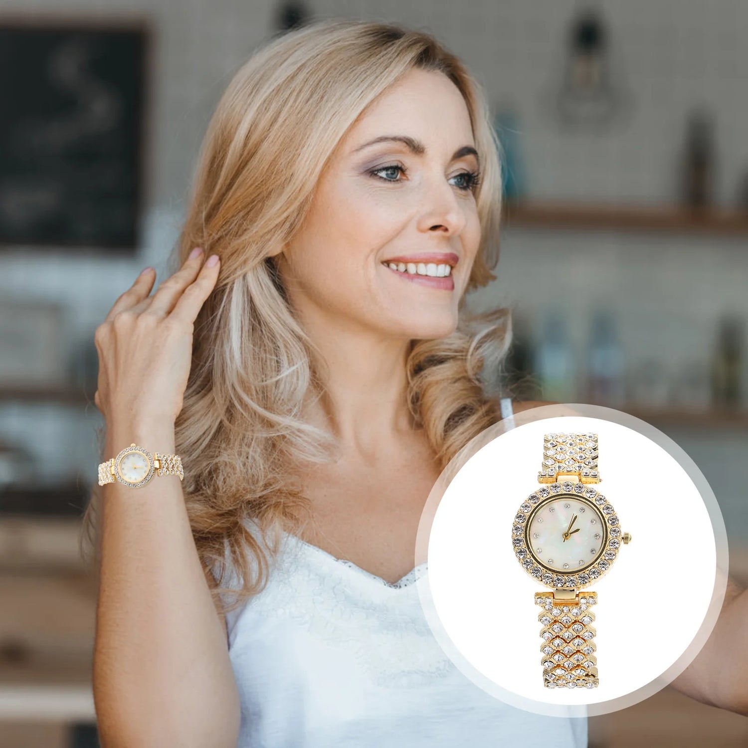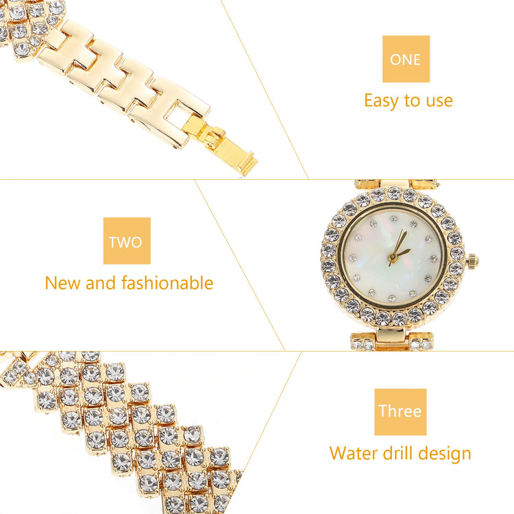 Women Diamond Watch Rhinestone Golden Elegant Shiny Design Practical Fashionable Most Occasions Nice Clothes Decor
