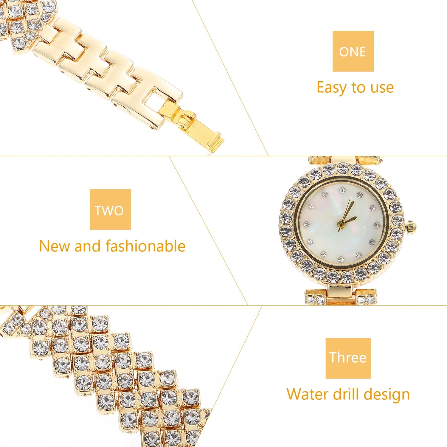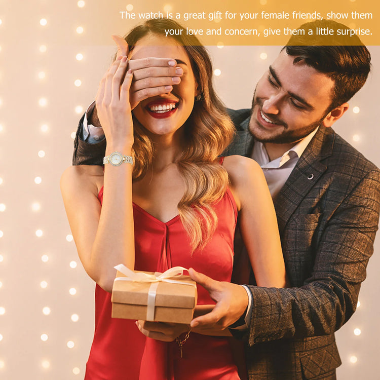 -Great gift choice for your girlfriend, wife and female friends, designed with rhinestone, they would like it. Golden Watch