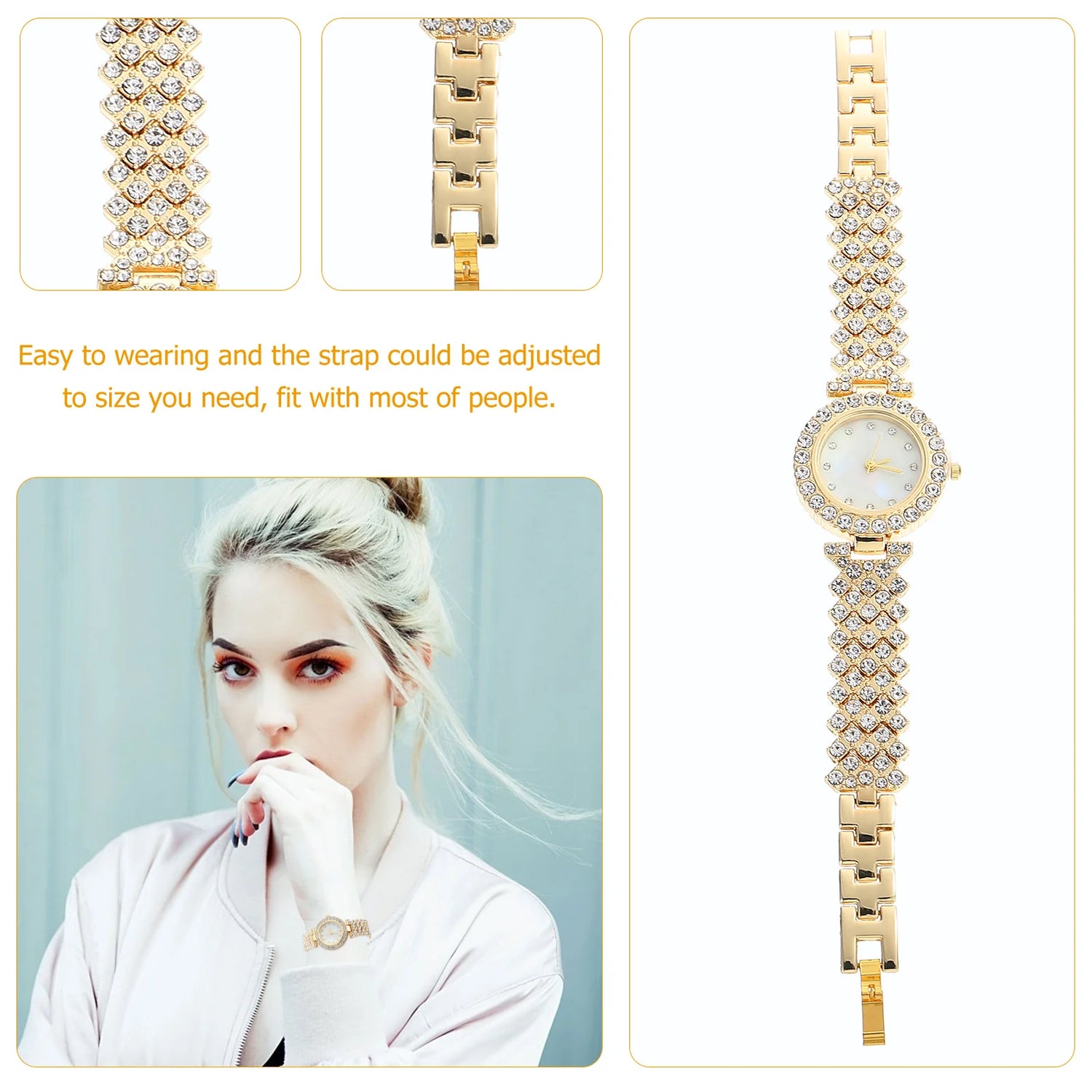 If you are looking for a fashionable and affordable lady watch, then your research is over here. With elegant and stylish design, full of light , nice gift for your female friends. Designed with shiny and chic rhinestone decor, with bright golden appearance. Great for wearing it in casual or formal event, such as banquet, party, meeting and more. Gold Watch For Women