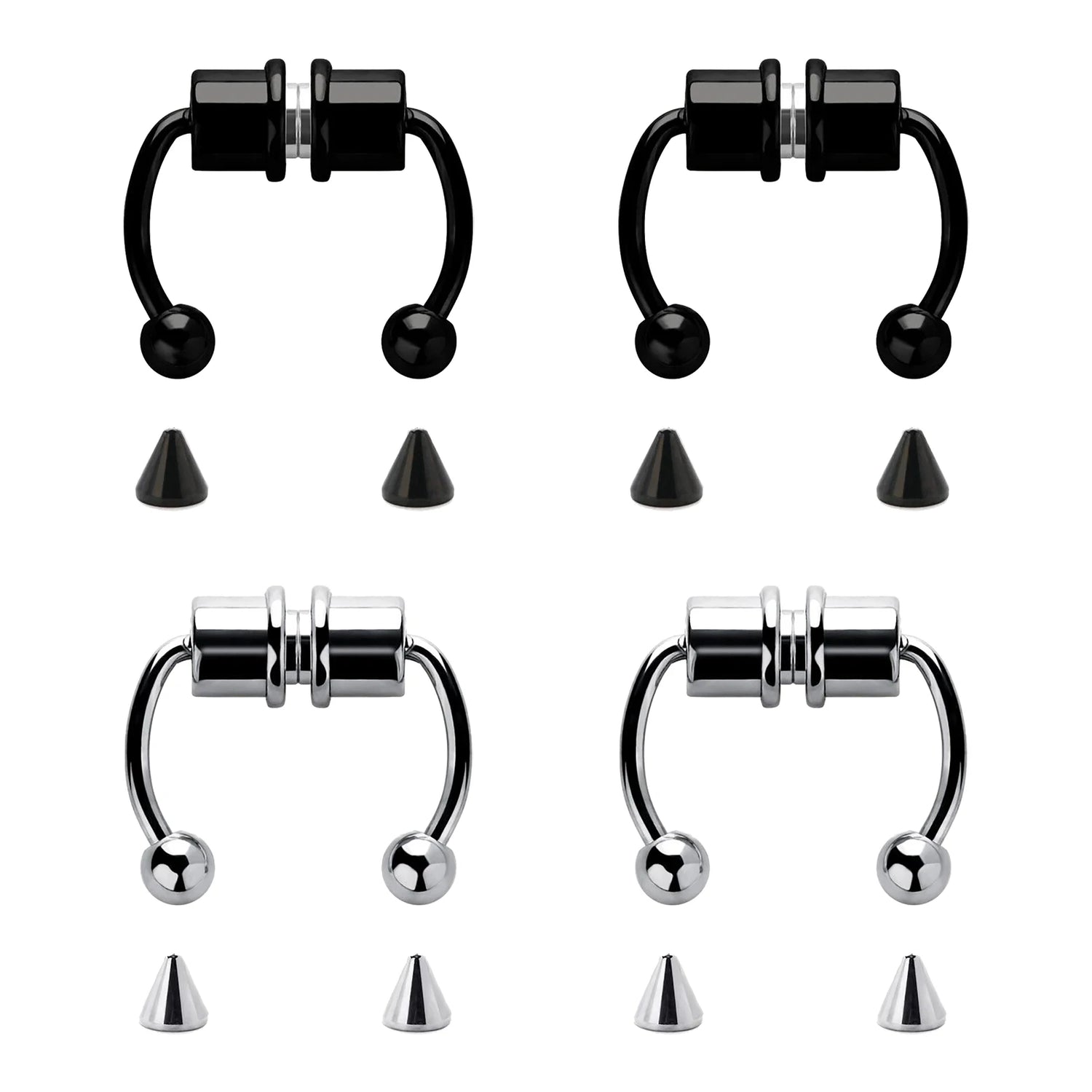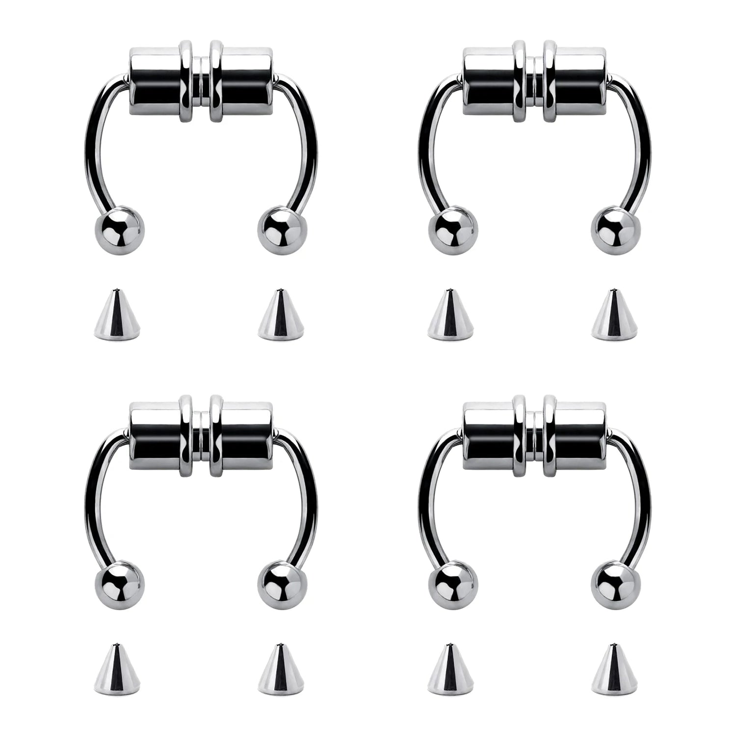 1/4pcs Women's Fake Nose Rings - Magnetic Stainless Steel Septum Hoops, Rock Hip Hop Body Jewelry