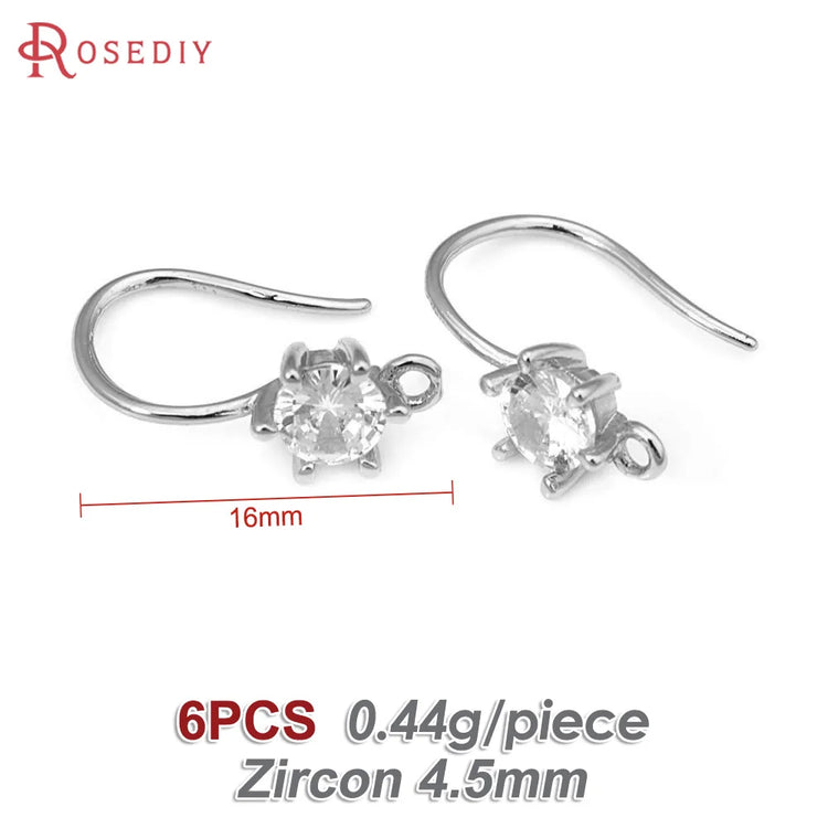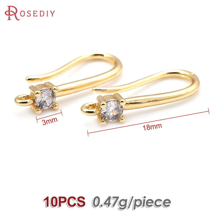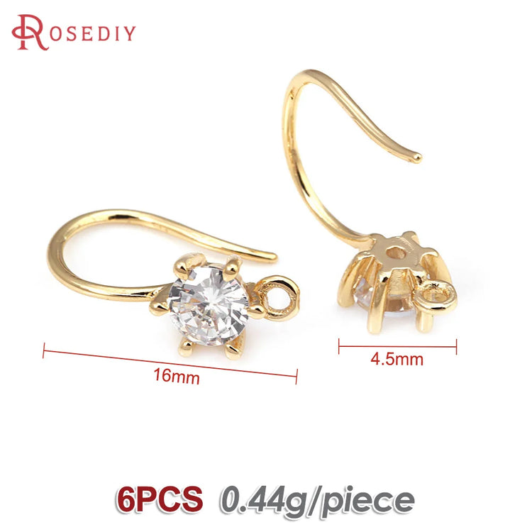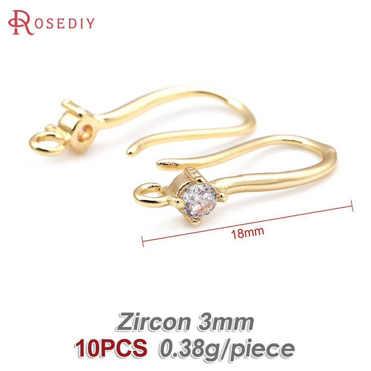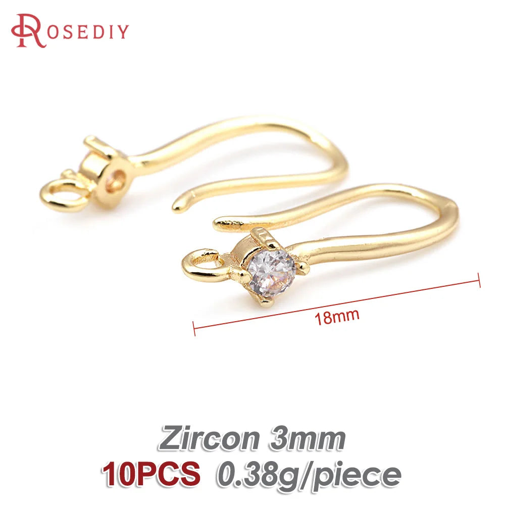 18K Gold Color Brass with Zircon Round Earrings Hooks High Quality Diy Jewelry Making Supplies Earrings Accessories for Women