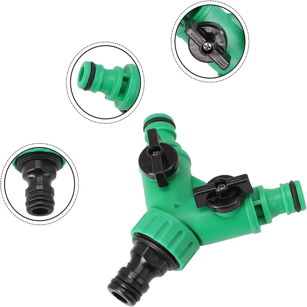 2-Way Garden Hose Splitter Y Connector - Quick Connect Valve with On/Off Switch for Faucet Irrigation Flower Water Control