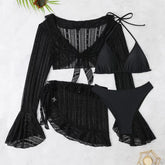 2025 Sexy Four-piece Women Swimsuit Long-sleeve Cover-up Swimwear Summer Solid Bikini Set Brazilian Beachwear Party bathing suit