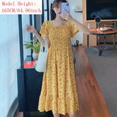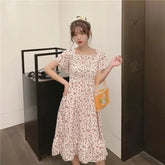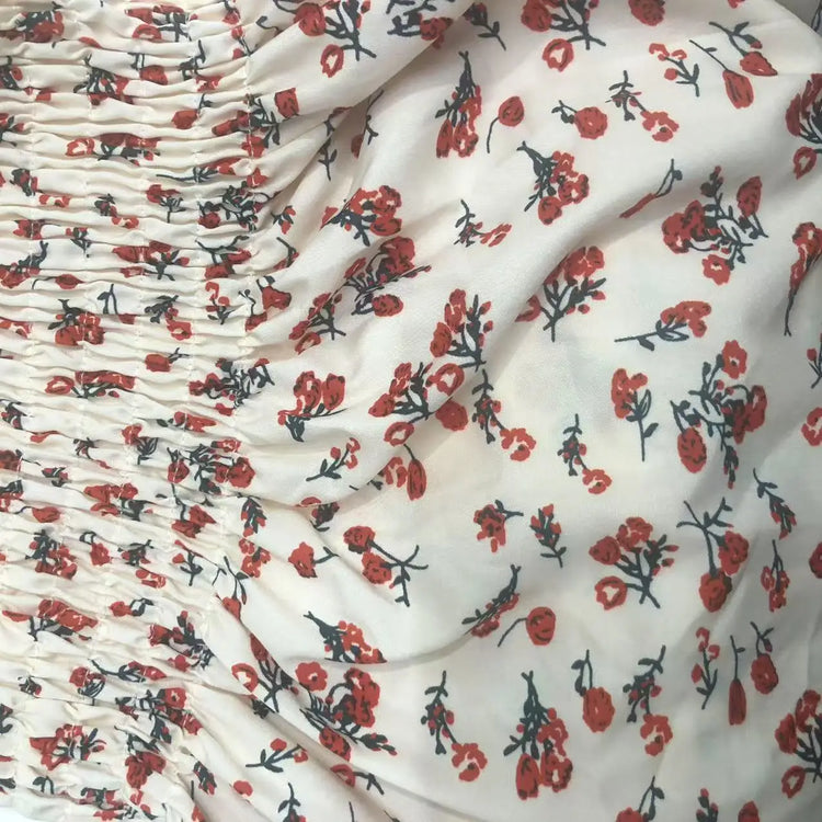 2025 Spring Summer New Dress Women Mini Dresses Female Short Sleeve Elastic Bust Printed Floral Pleated Backless Casual Dress