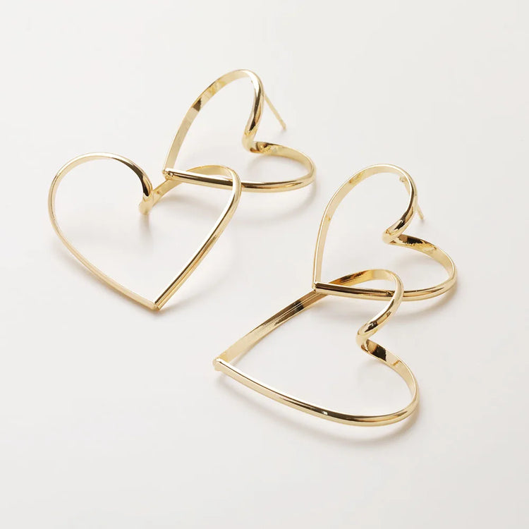 2PCS Dainty Double Heart Ear Studs Earrings for Jewelry Making DIY Hand Made Brass 14k Gold Plated 52*32mm Accessories