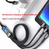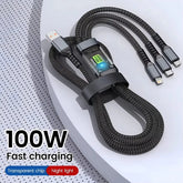 3-in-1 USB 100W 6A Fast Charger Cable Car USB To Type-C Micro LIGHTNING Cable For iPhone 16 15 14 13 Samsung Xiaomi Huawei