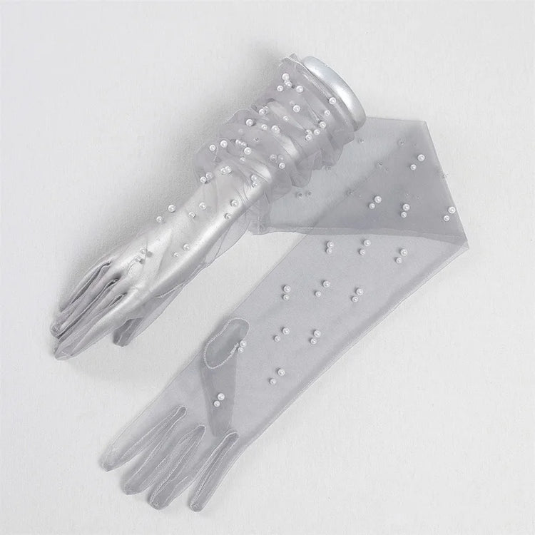55 cm Transparent Wedding Gloves Pearls Long Elbow Mittens Mesh Arm Covers Women Party Bridal Dress Accessories Photo Props