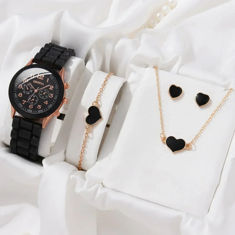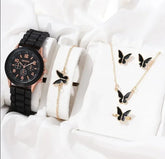 5PCS Set Luxury Watch Women Ring Necklace Earrings Rhinestone Fashion Wristwatch Female Casual Ladies Watches Bracelet Set Clock