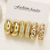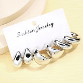 6pcs Chunky Gold Plated Waterdrop Hoop Earring Set For Women European and American Minimalist Smooth Circle Drop Earring Jewelry