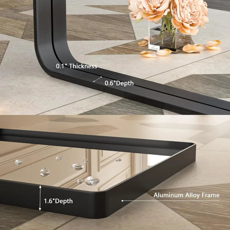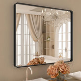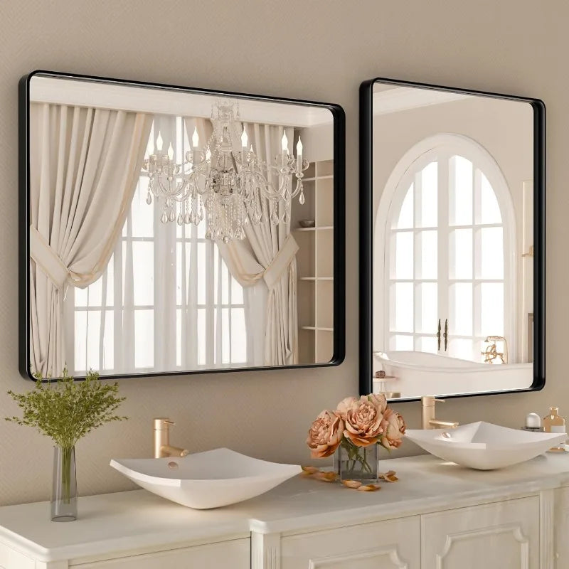 Black Mirror for Bathroom 40x32 Inch,Black Metal Frame Vanity Mirror for Wall,Rounded Corner Rectangle Matte Black Mirror,Temper