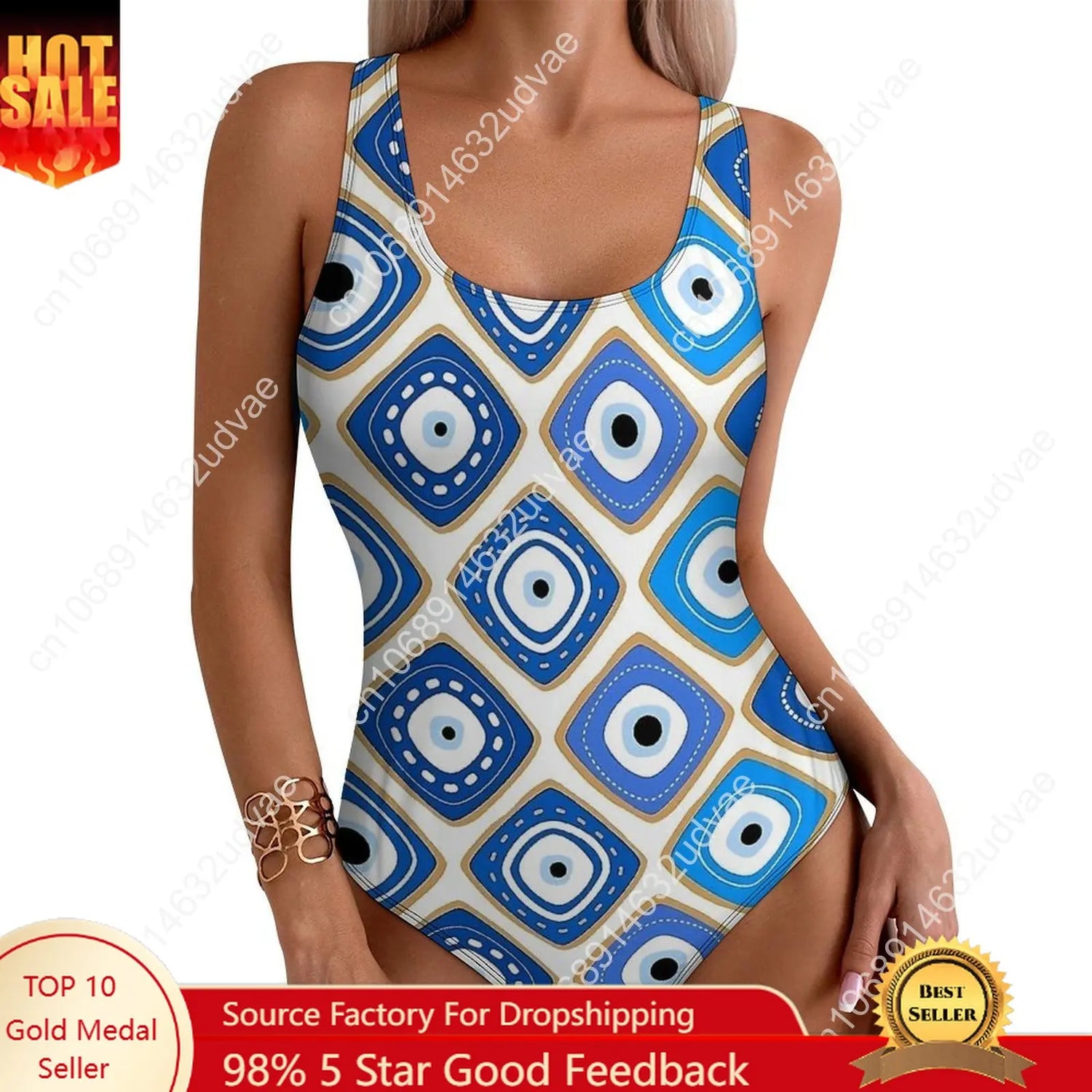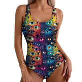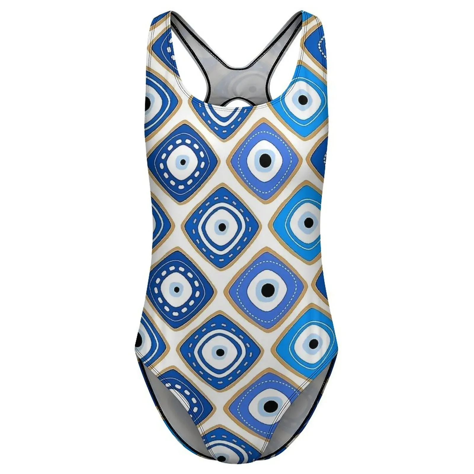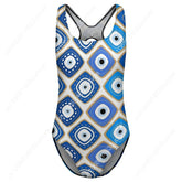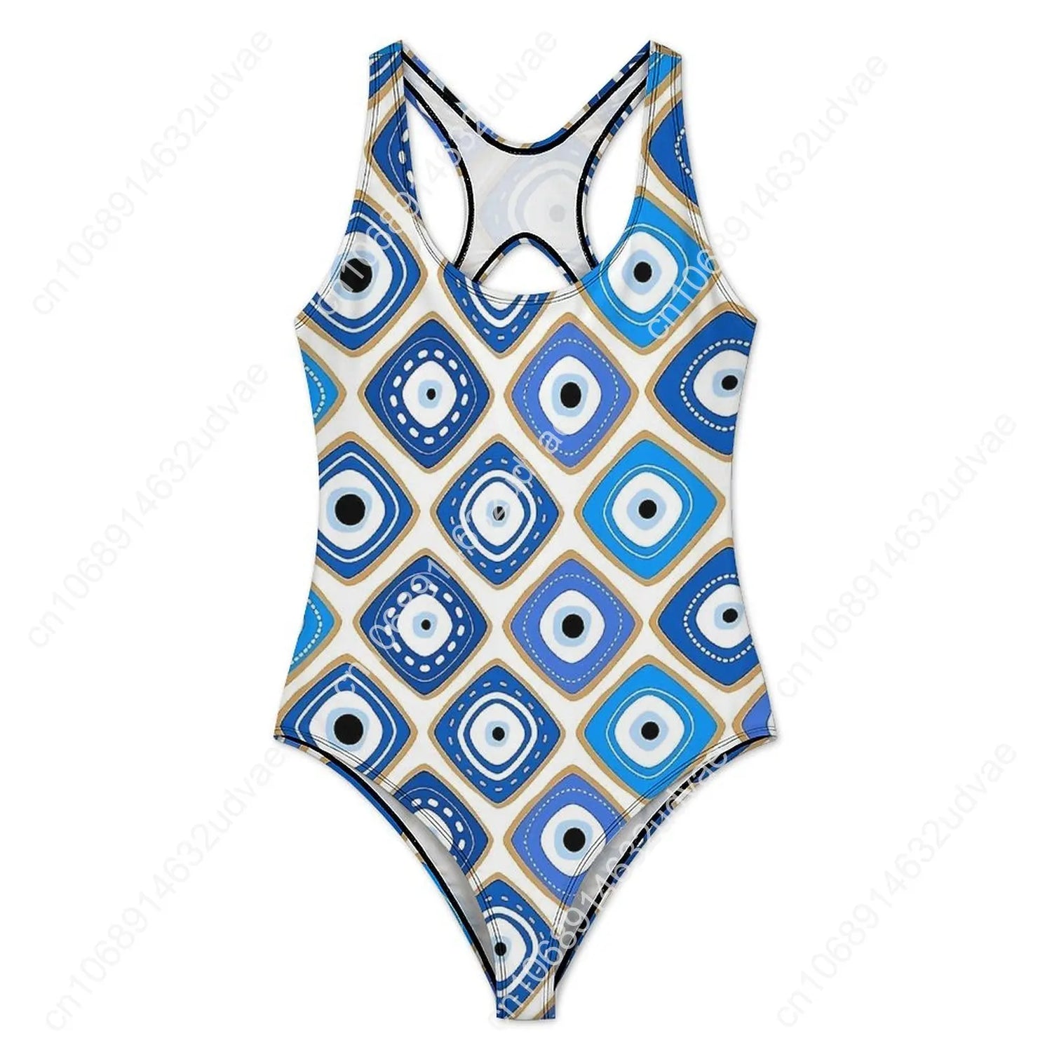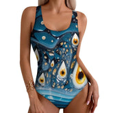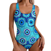 Blue Evil Eye Print Swimsuit Sexy One Piece Swimwear Push Up Bodysuit Novelty Beach Beach Outfits