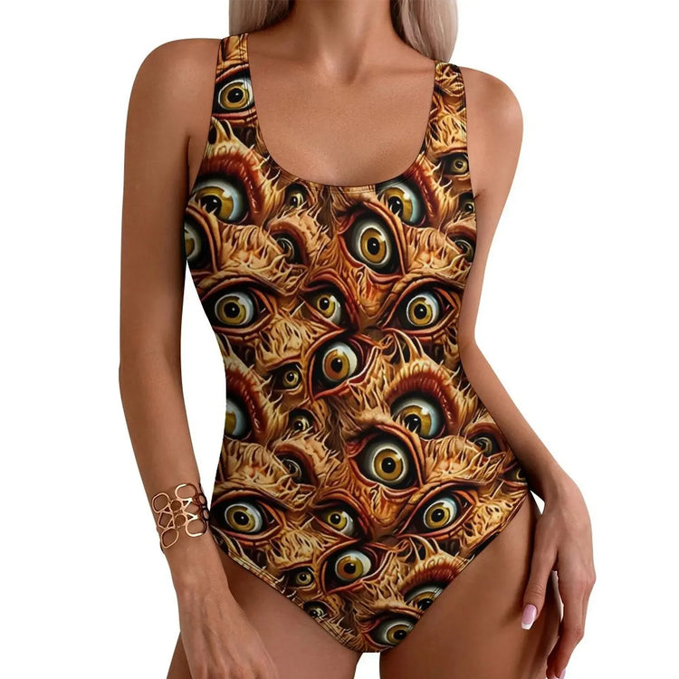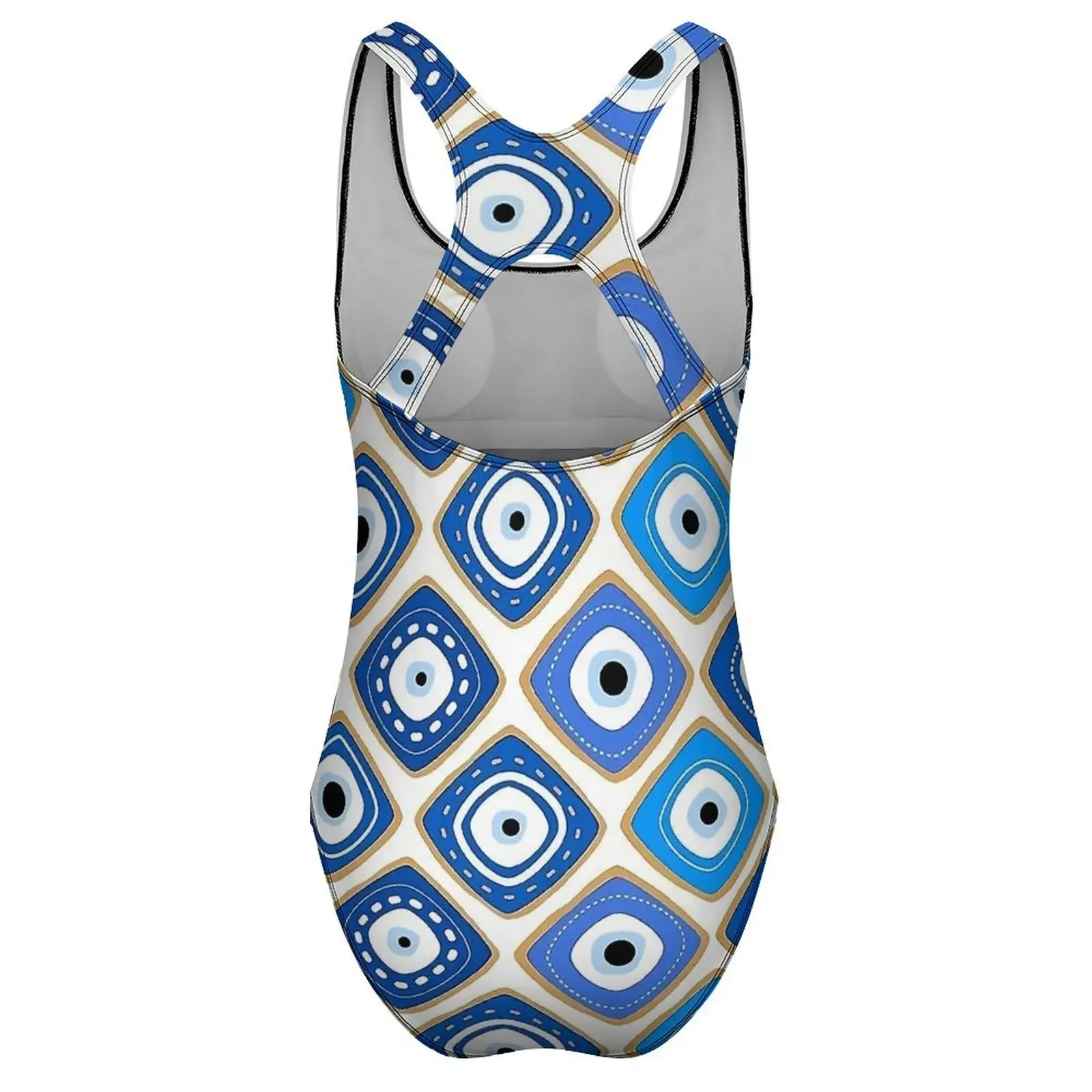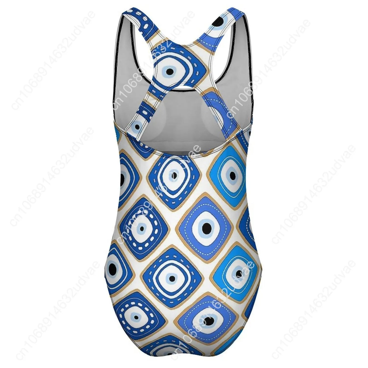 Blue Evil Eye Print Swimsuit Sexy One Piece Swimwear Push Up Bodysuit Novelty Beach Beach Outfits