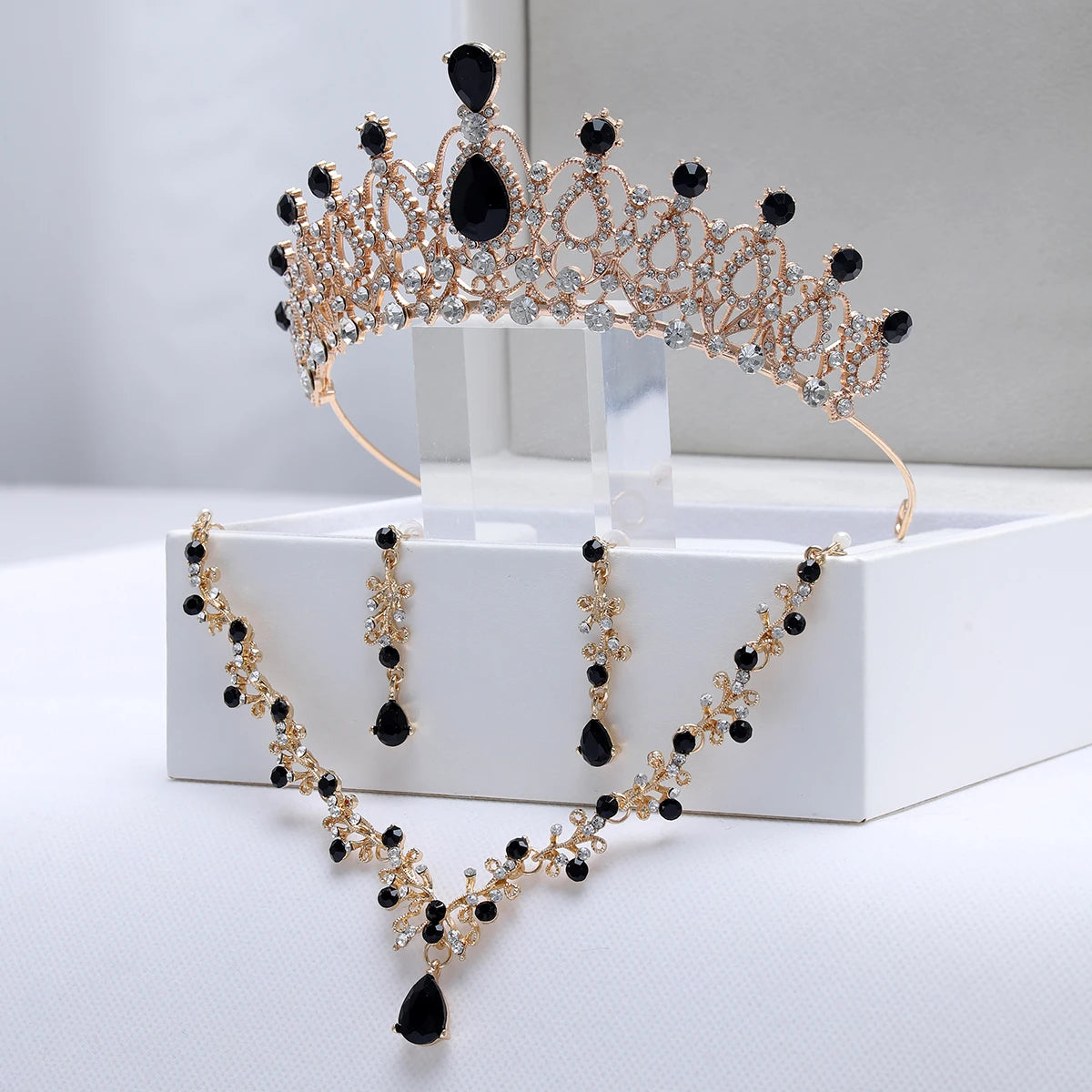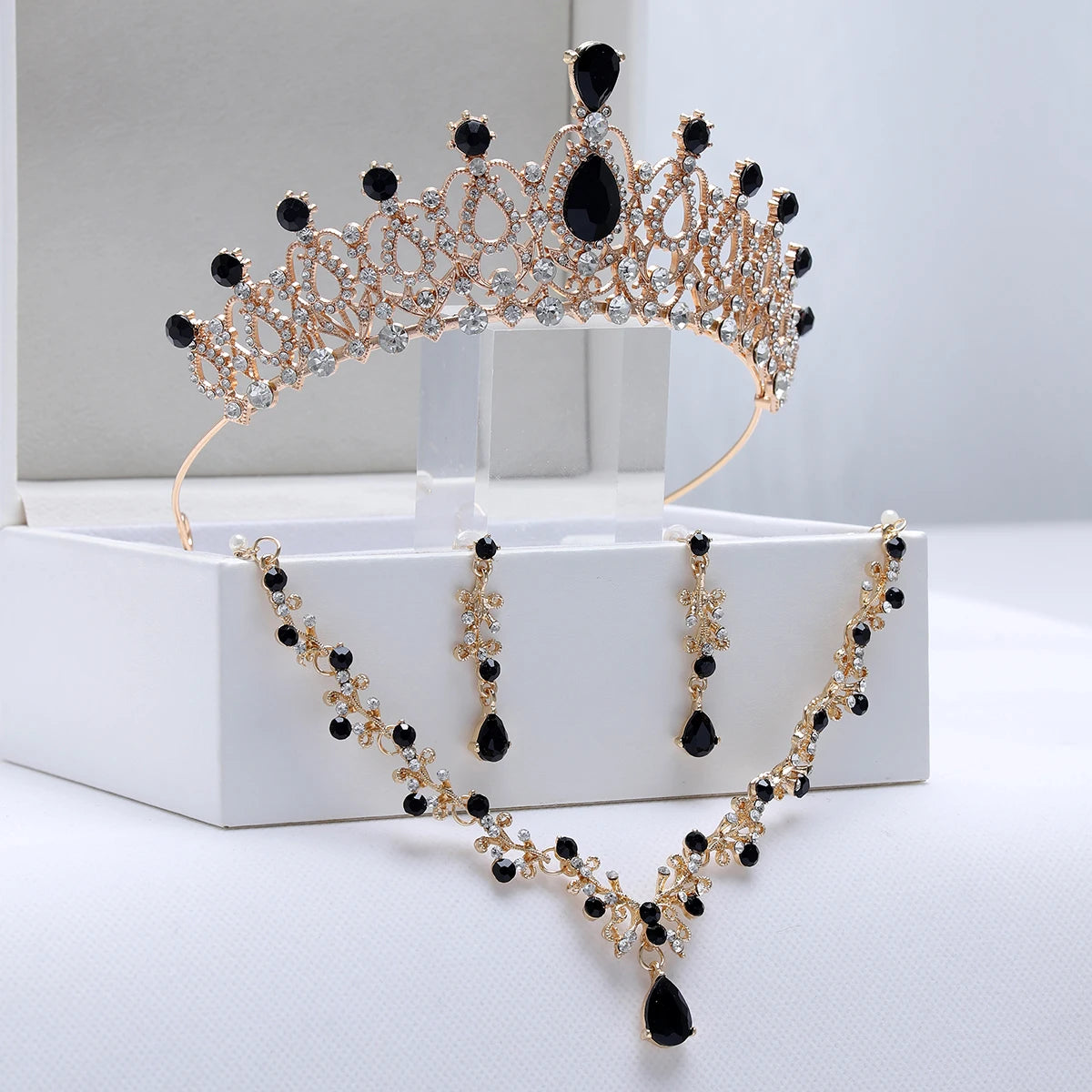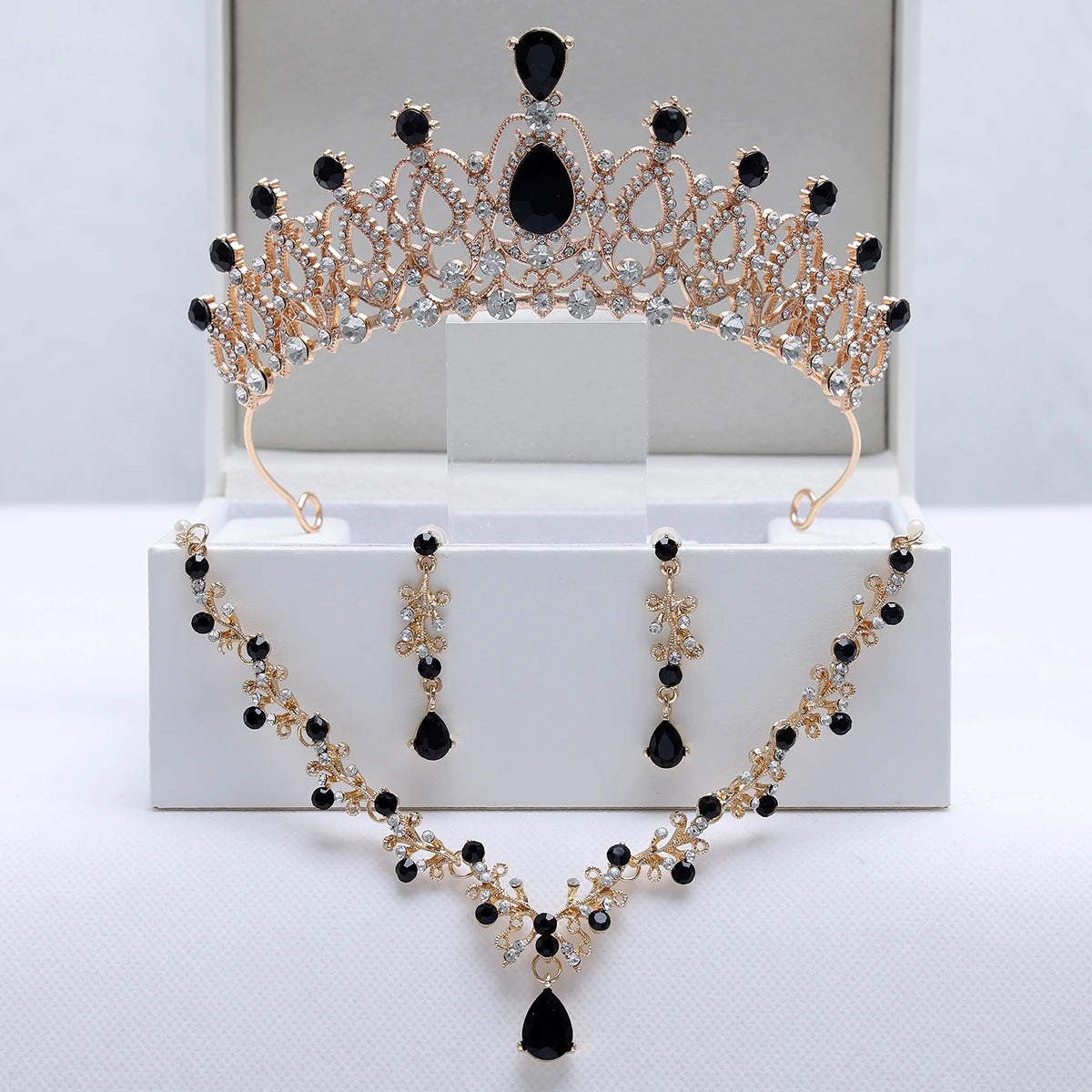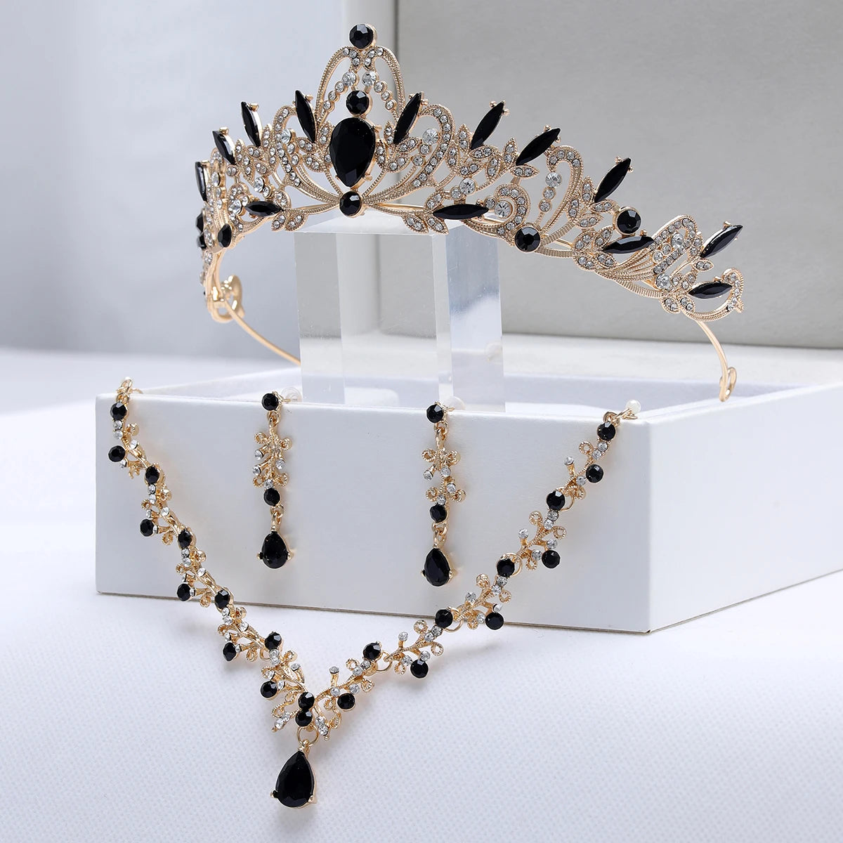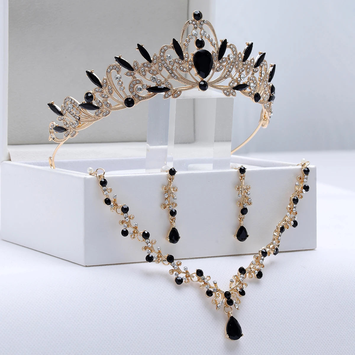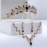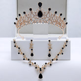 Bridal Headwear Full Of Noble Temperament Brief Retro Black-color Ladies' Tiaras Necklace Earrings 4 Pcs Set (Without Box)
