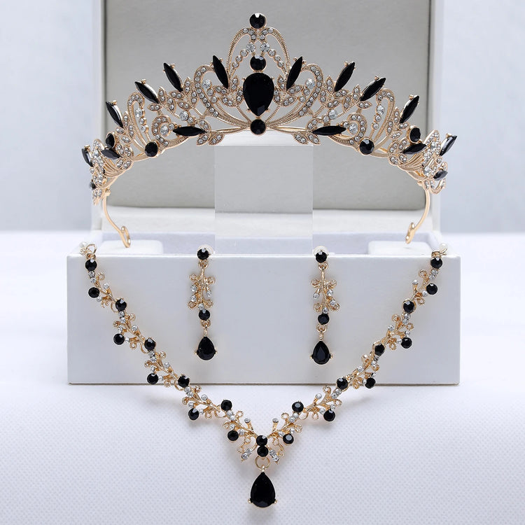 Bridal Headwear Full Of Noble Temperament Brief Retro Black-color Ladies' Tiaras Necklace Earrings 4 Pcs Set (Without Box)