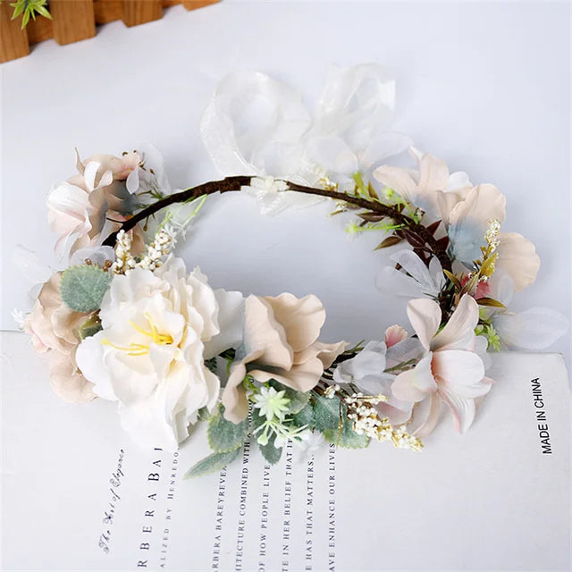 Bride bridesmaid Wreath Crown Festival Headband Women Hair Accessories Headdress Girl Floral Garland Wedding Floral Headwear