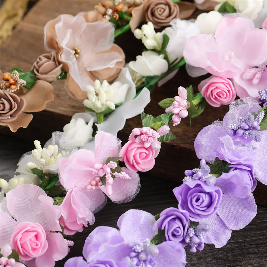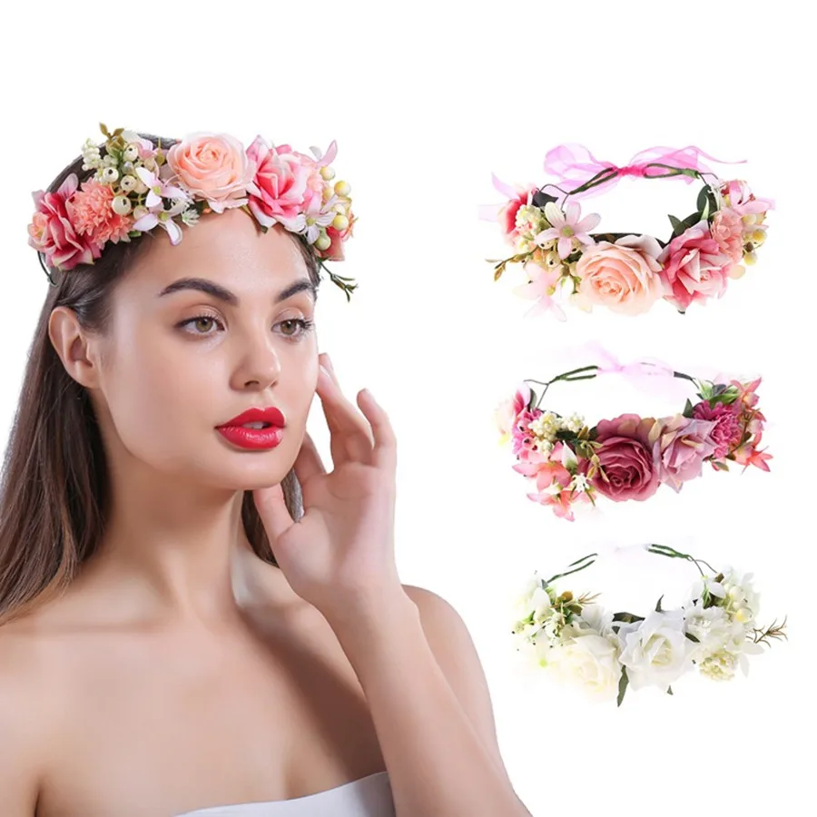 Bride bridesmaid Wreath Crown Festival Headband Women Hair Accessories Headdress Girl Floral Garland Wedding Floral Headwear
