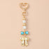 Cute Bowknot Love Heart Keychain Crystal Pearl Key Ring Pendants for Women Girls Handbag Decor DIY Handmade Key Chain Gifts