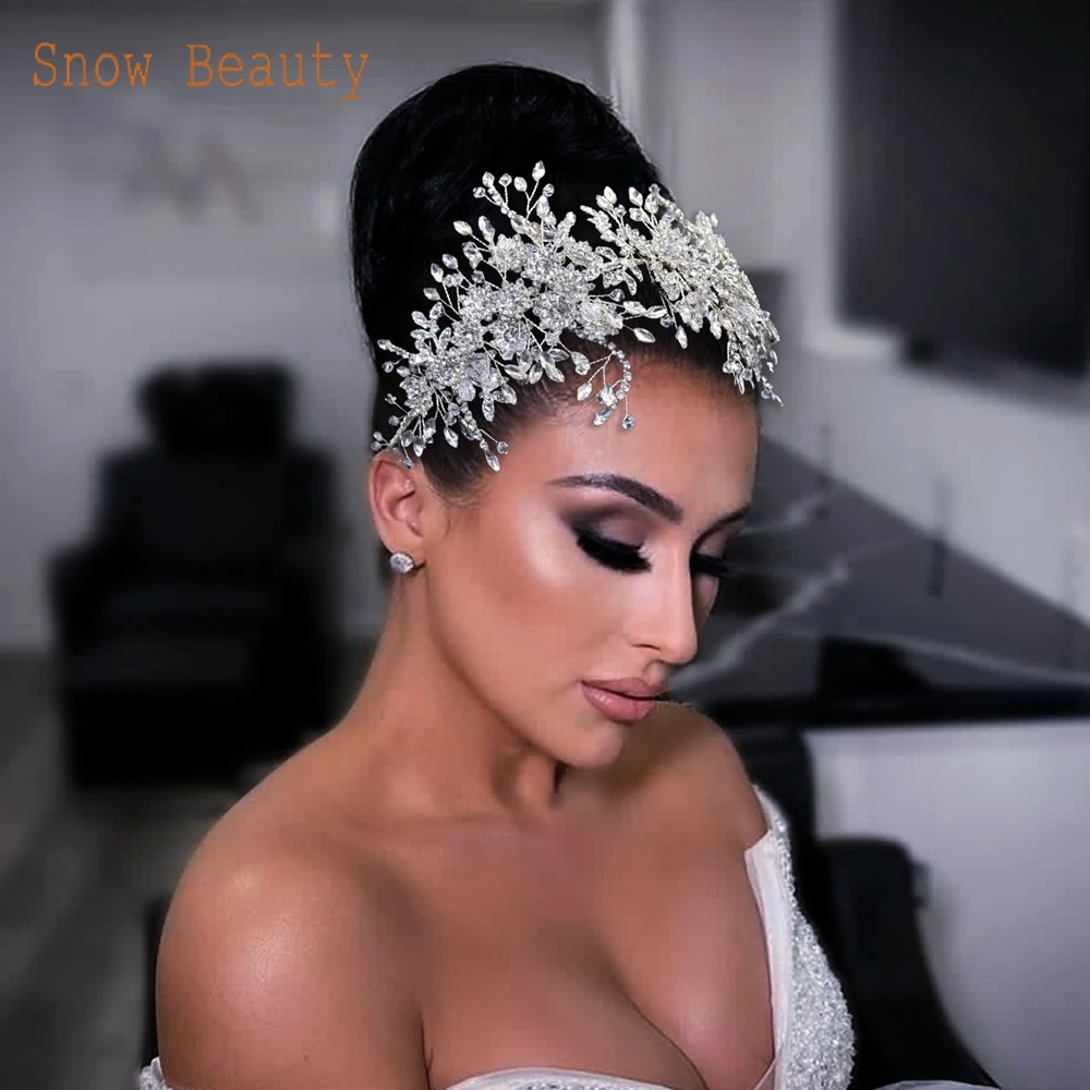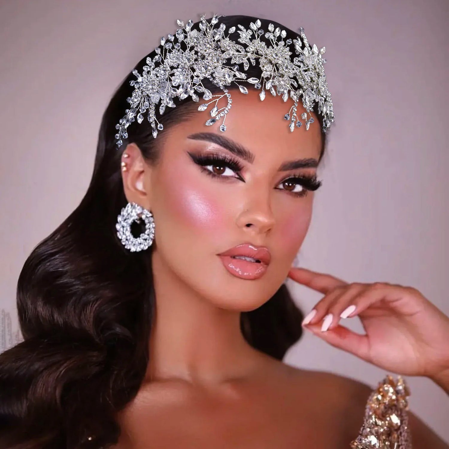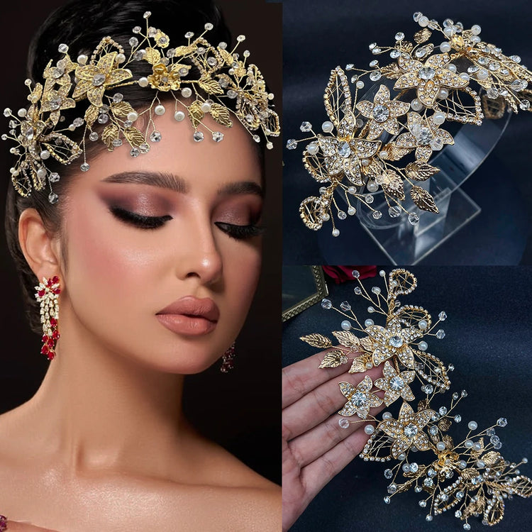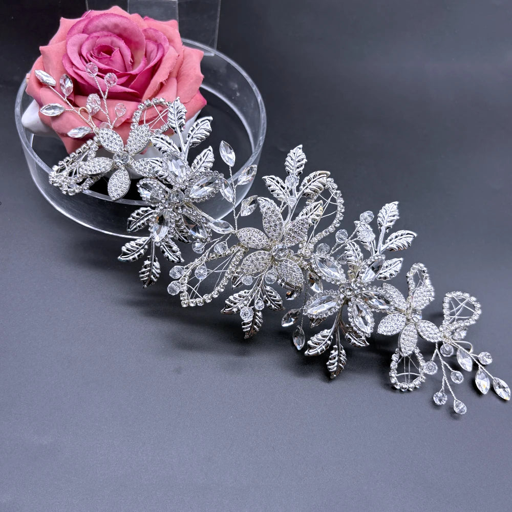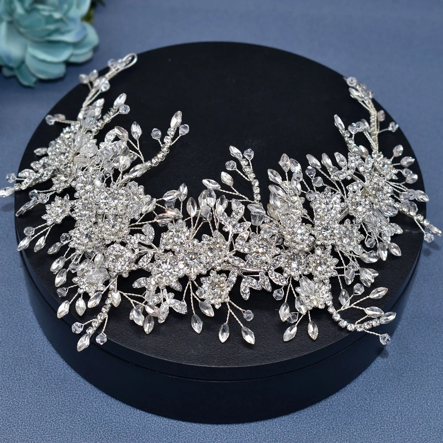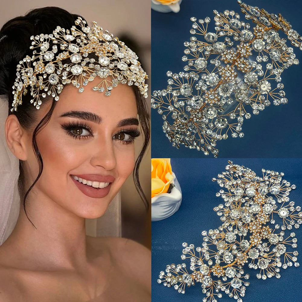 DZ096 Luxury Bridal Crown Flower Headdress Fashion Rhinestone Wedding Crowns and Tiaras Crystal Bridesmaid Hair Pieces Headwear