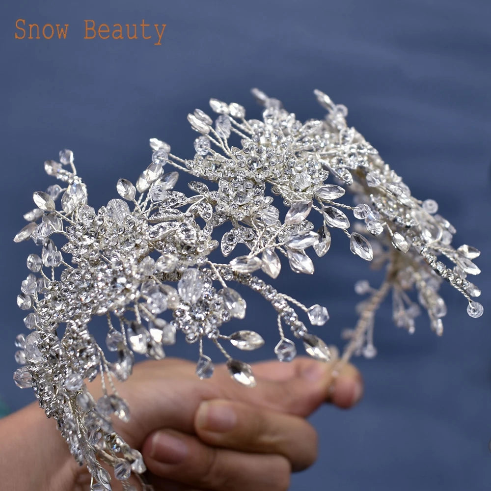 DZ096 Luxury Bridal Headband Handmade Rhinestone Tiara Pageant Crown Wedding Royal Alloy Bridal Hair Accessories Jewelry