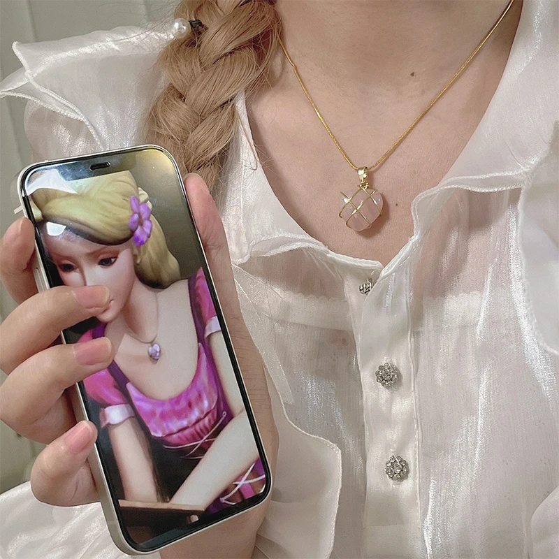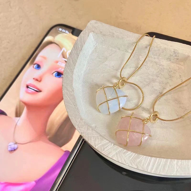 Fashion Opal Heart Necklace Crystal Castle Necklace For Women Girls Rose Quartz Necklace Jewelry Accessories Gift